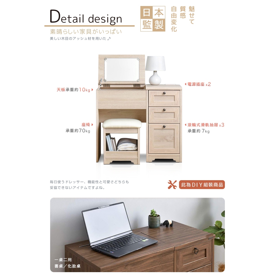 日本原創設計|Sato|ANRI筱日子化妝三抽桌椅組‧幅80cm(象牙白)|原價5980特價4580|組裝費500元日本原創設計|Sato|ANRI筱日子化妝三抽桌椅組‧幅80cm(象牙白)|原價5980特價4580|組裝費500元Desks & TablesC’est Chic潮傢俬