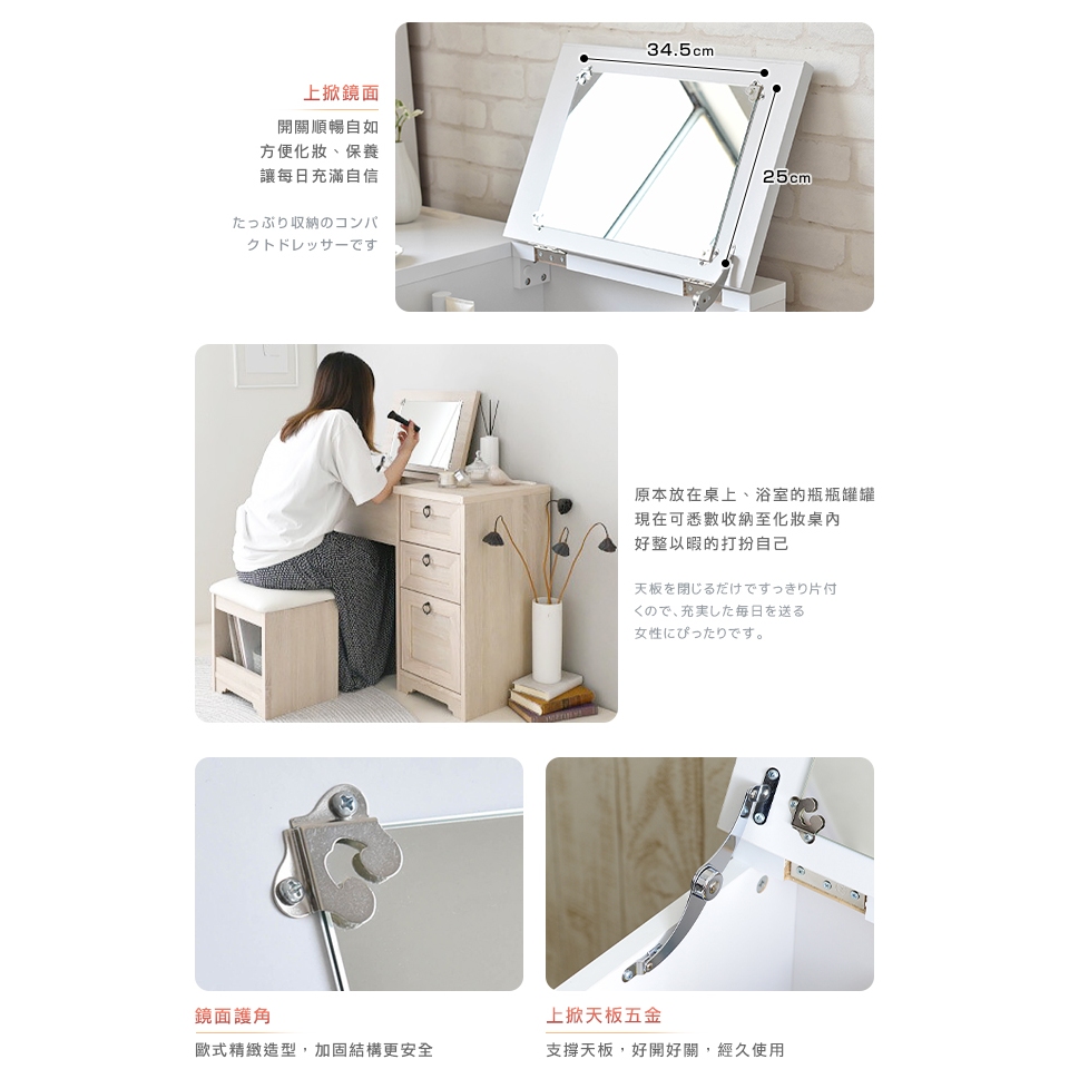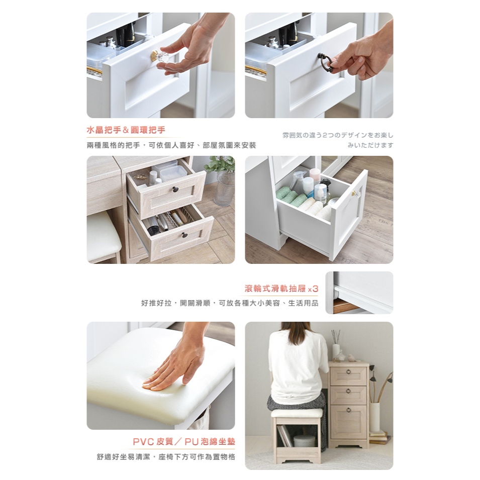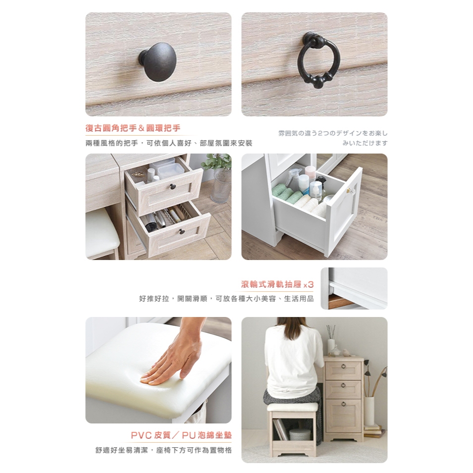 日本原創設計|Sato|ANRI筱日子化妝三抽桌椅組‧幅80cm(樸素白)|原價5980特價4580|組裝費500元