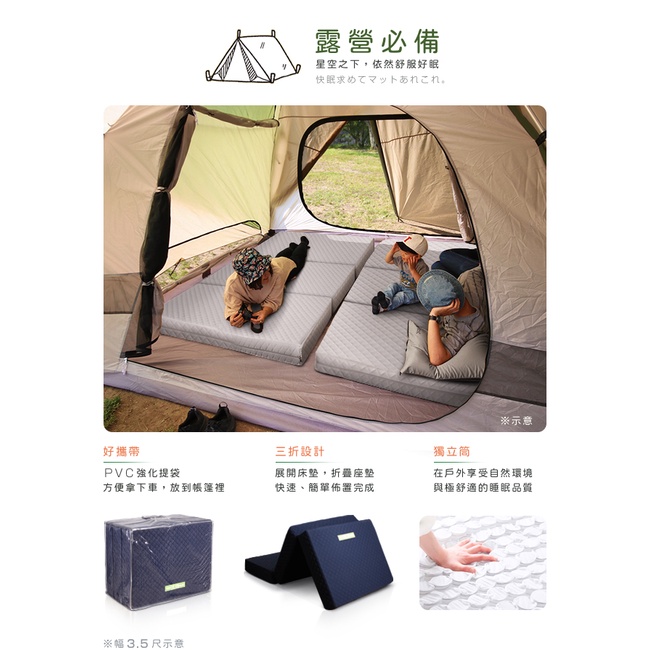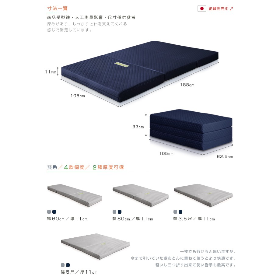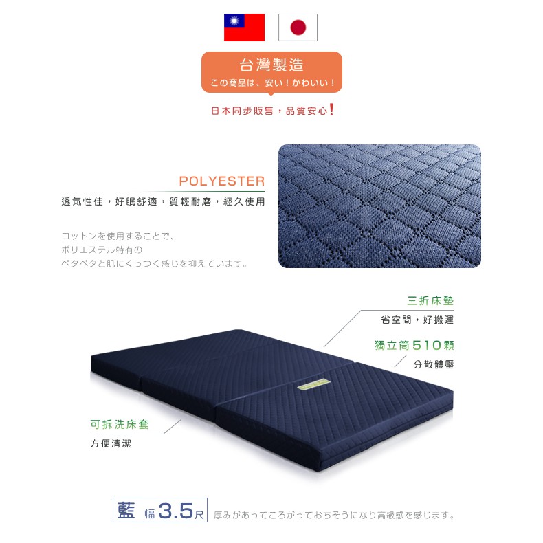 原創日本|附贈提袋|二代目日式三折獨立筒彈簧床墊3.5尺 兩色可選|厚11cm|原價7580特價6380|中鋼原料藍色|灰色MattressesC’est Chic潮傢俬