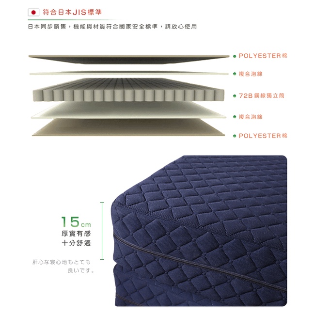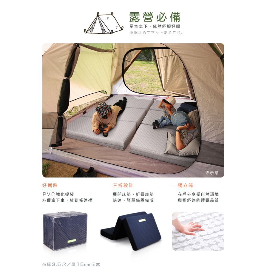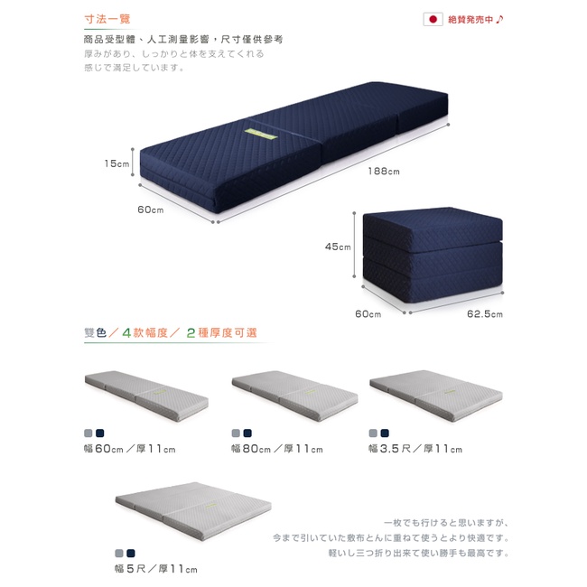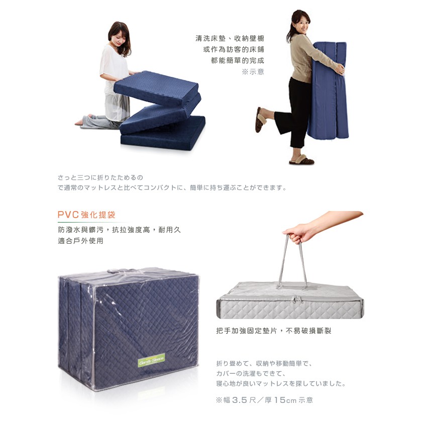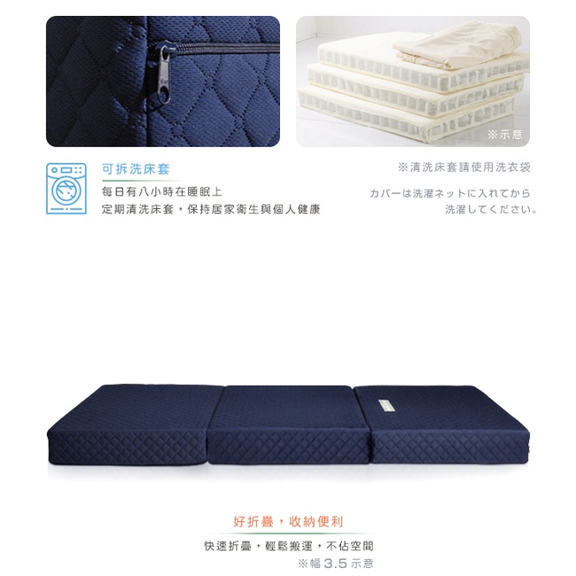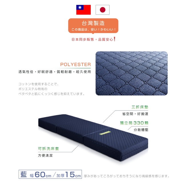 日本原創|附贈提袋| 二代目日式三折獨立筒彈簧床墊-幅60cm(加厚)15cm 兩色可選||原價6680特價49中鋼原料藍色|灰色MattressesC’est Chic潮傢俬