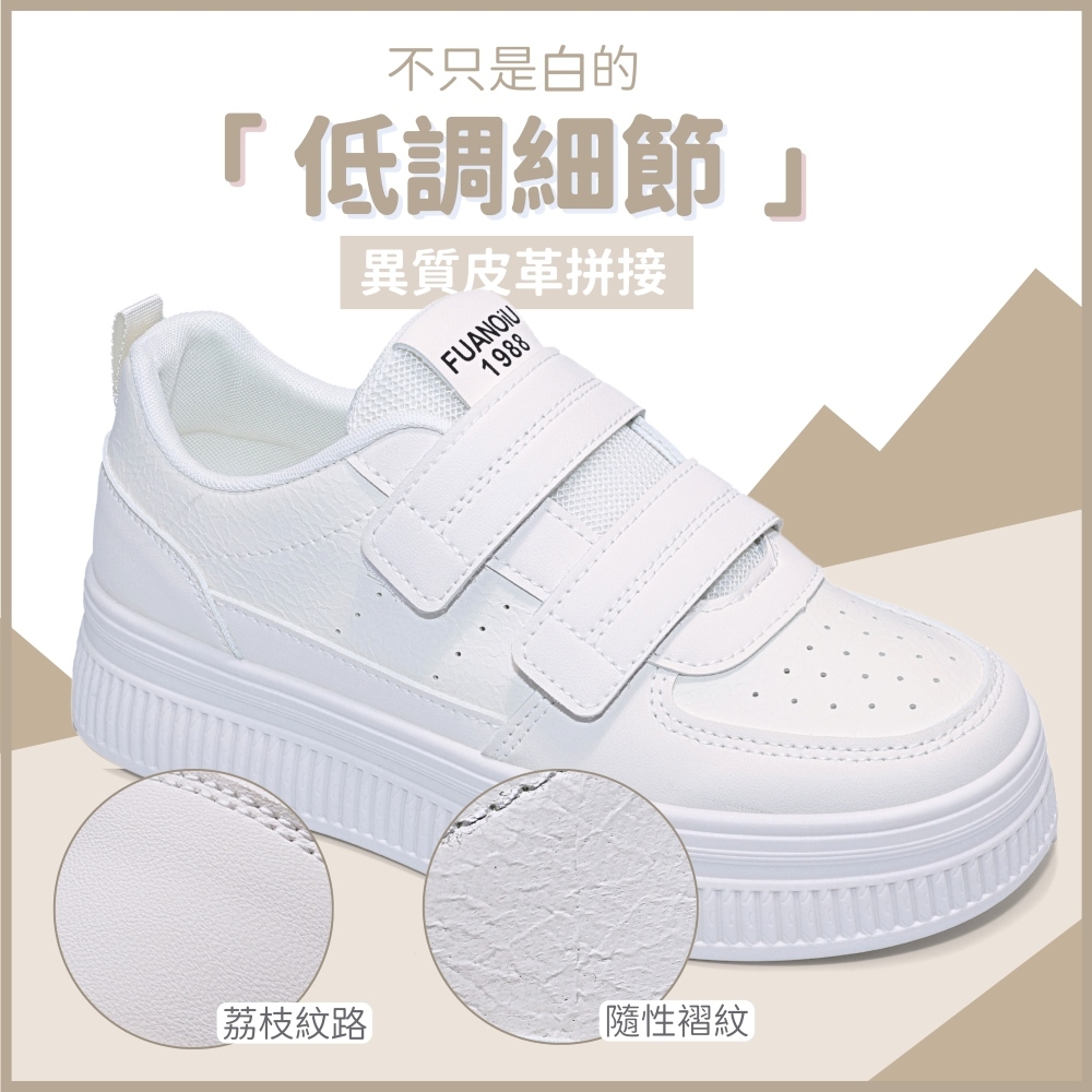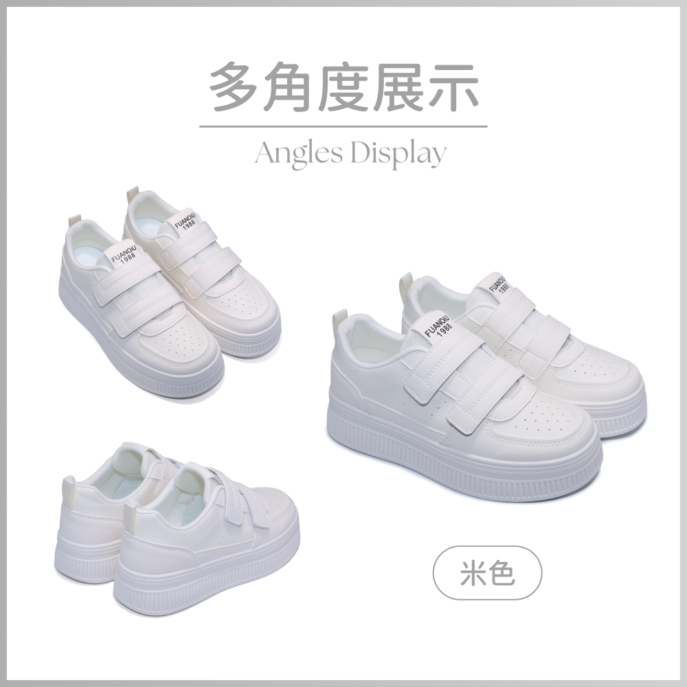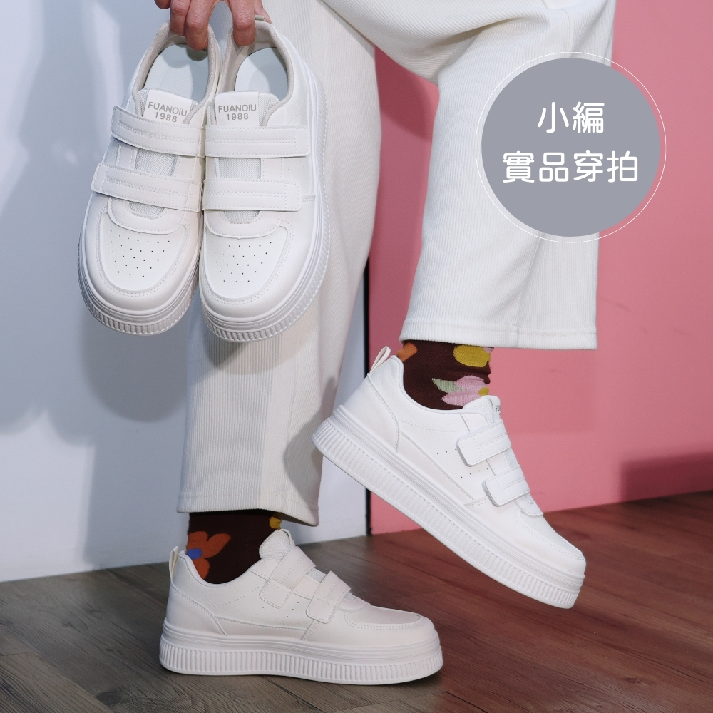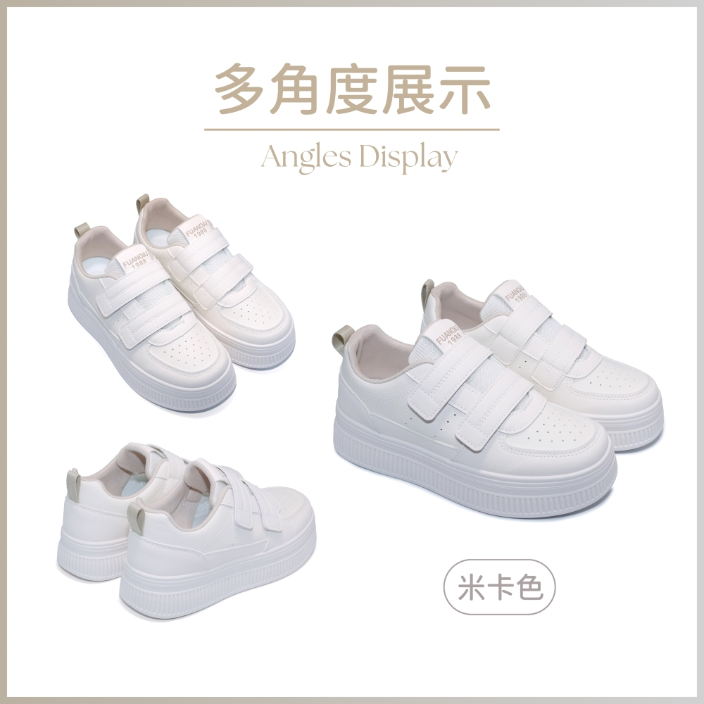 C&D 女鞋 4.5CM透氣皮面魔鬼氈厚底小白鞋 休閒鞋 運動鞋米色(實品偏白),36|米色(實品偏白),37|米色(實品偏白),38|米色(實品偏白),39|米色(實品偏白),40|米卡(實品偏白),36|米卡(實品偏白),37|米卡(實品偏白),38|米卡(實品偏白),39|米卡(實品偏白),40C&D SHOES