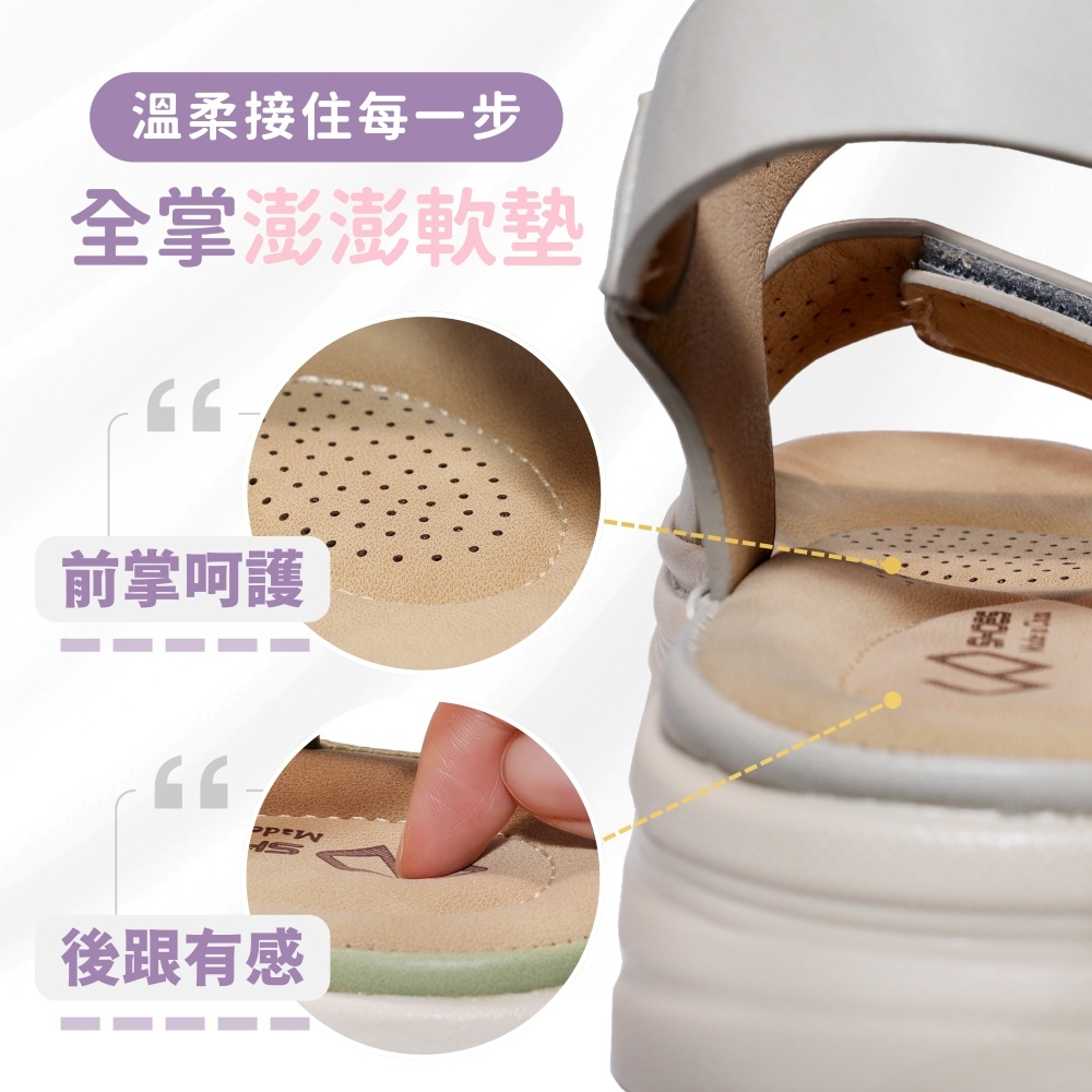 [售完不補] C&D 女鞋 輕量彈力加厚軟墊坡跟涼鞋 楔型鞋 休閒涼鞋 淑女鞋 媽媽鞋 長輩鞋 米