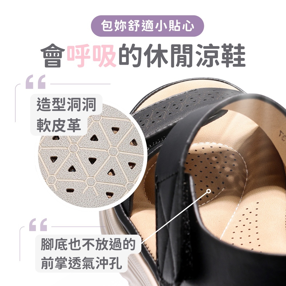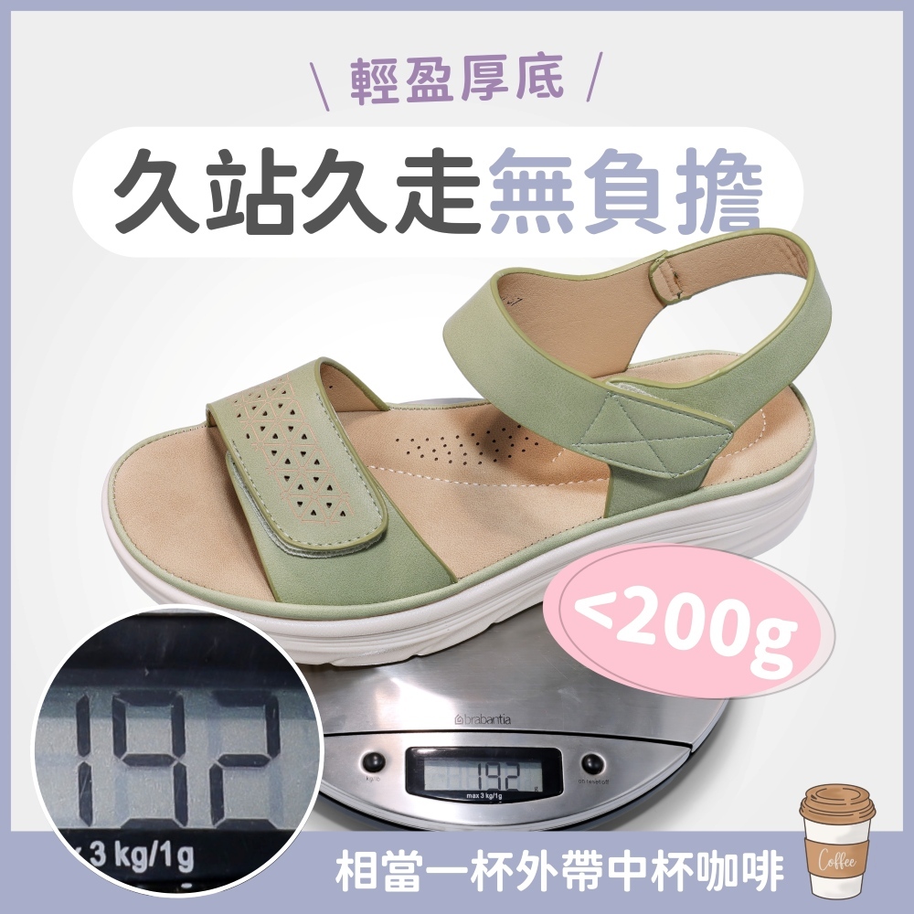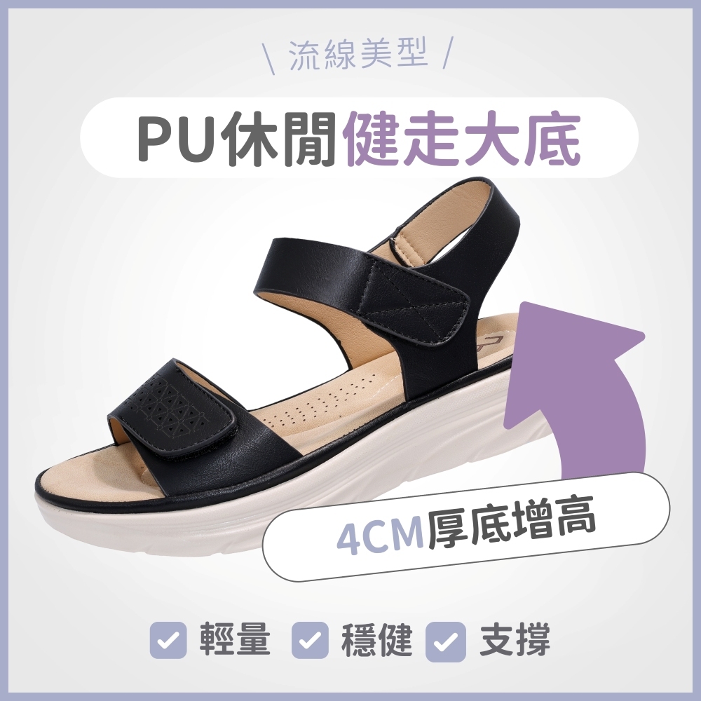• [售完不補] C&D 女鞋 輕量彈力加厚軟墊坡跟涼鞋 楔型鞋 休閒涼鞋 淑女鞋 媽媽鞋 長輩鞋 米