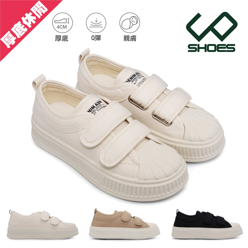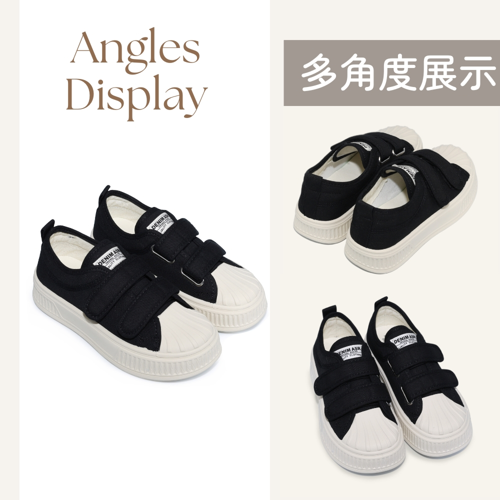 • C&D 女鞋 潮流貝殼免綁帶餅乾鞋 增高鞋 鬆糕鞋 包頭鞋 餅乾鞋 休閒鞋 帆布鞋