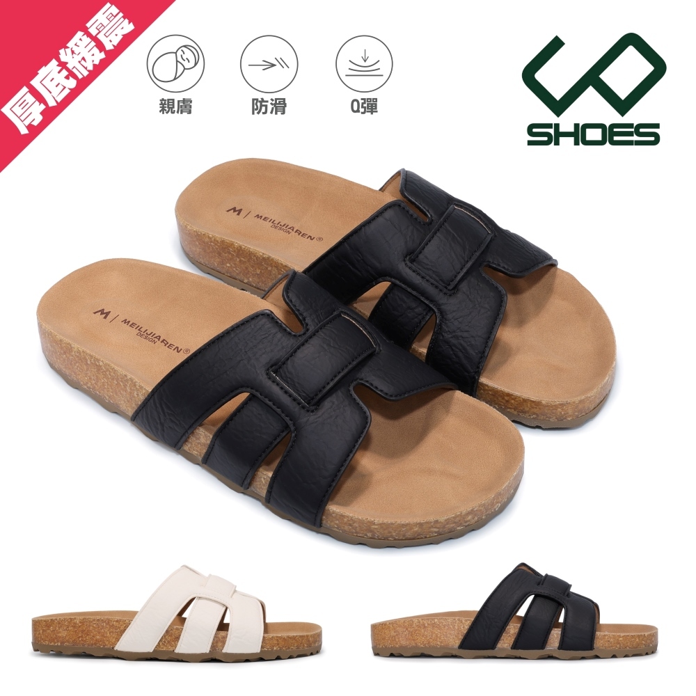 C&D 女鞋 超軟Q 防滑 微足弓 經典H拖休閒拖鞋 厚底拖鞋 戶外拖鞋米色,36|米色,39|米色,37|米色,40|米色,38|黑色,36|黑色,39|黑色,37|黑色,40|黑色,38Flat SandalsC&D SHOES