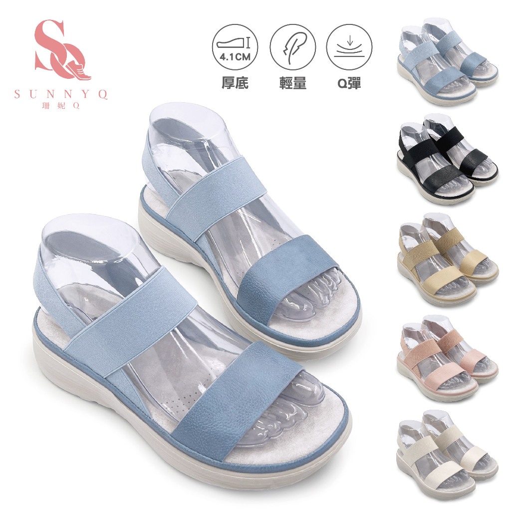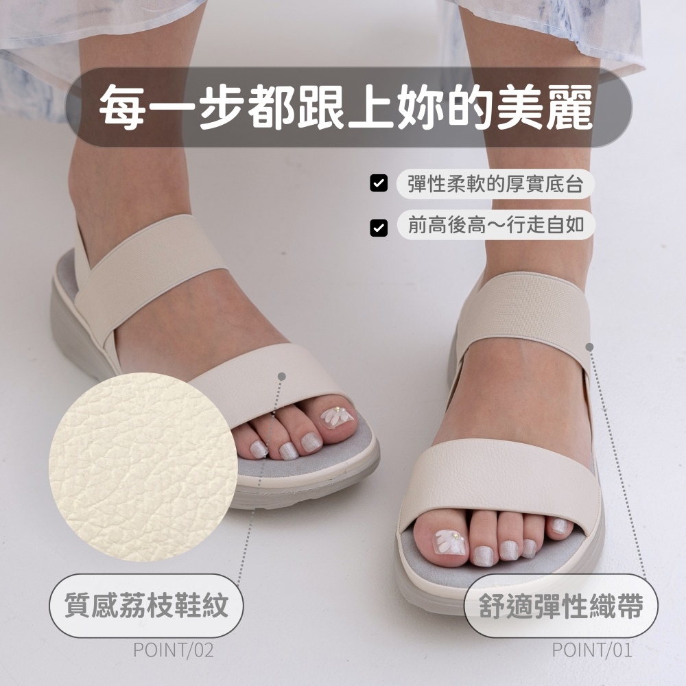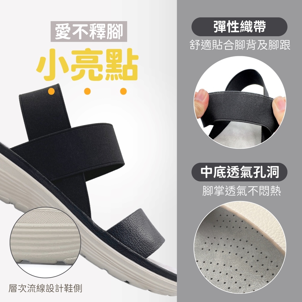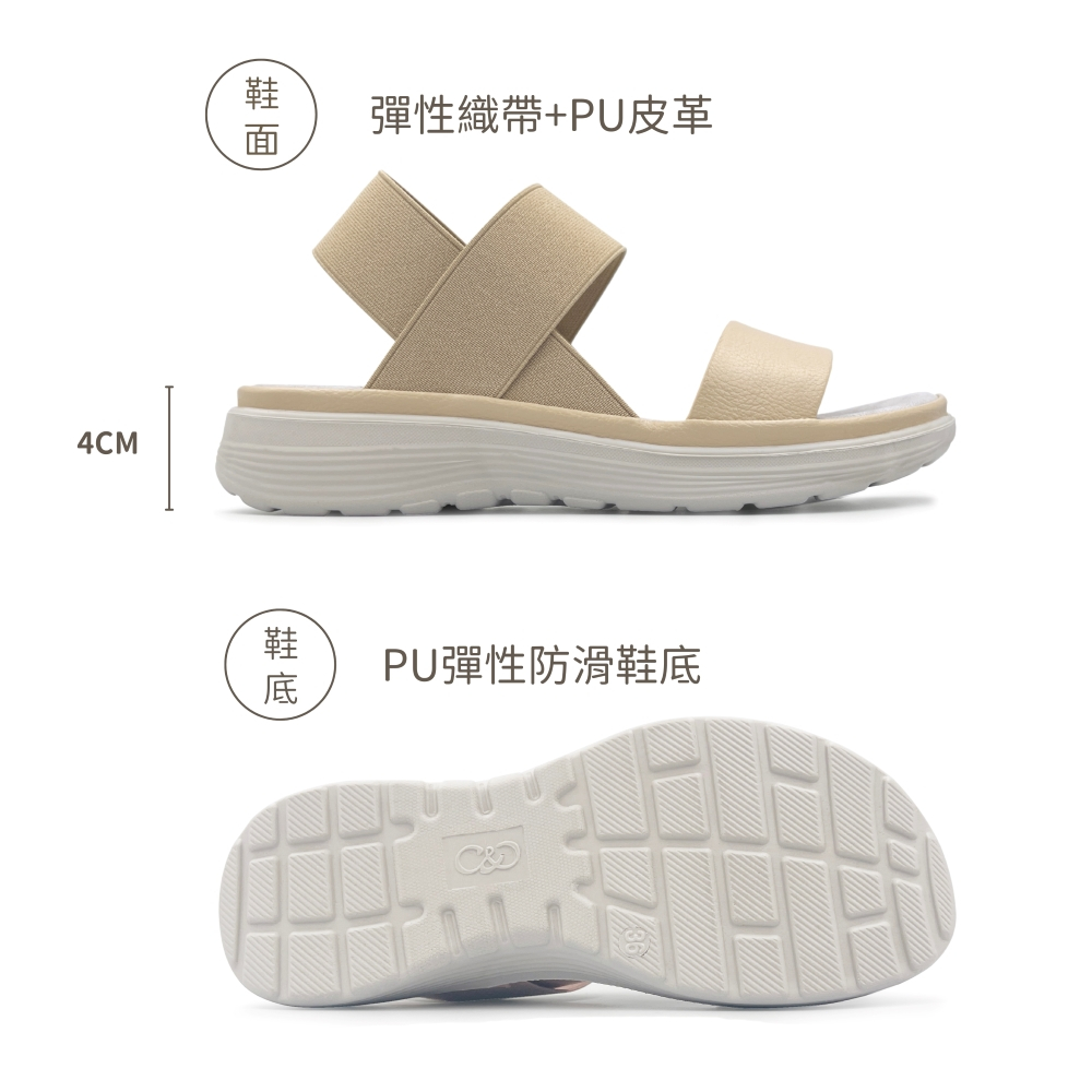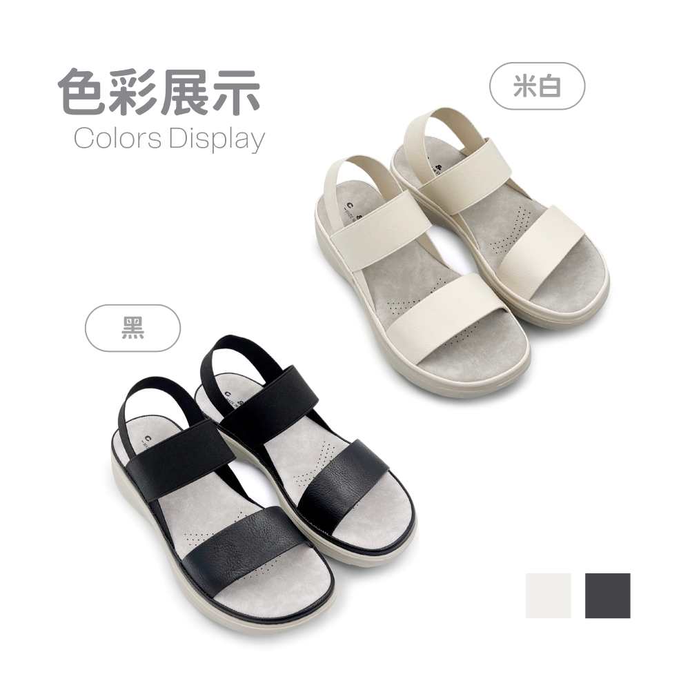 • C&D 女鞋 鬆緊織帶彈性厚底舒適涼鞋 厚底涼鞋 戶外涼鞋 C-1291