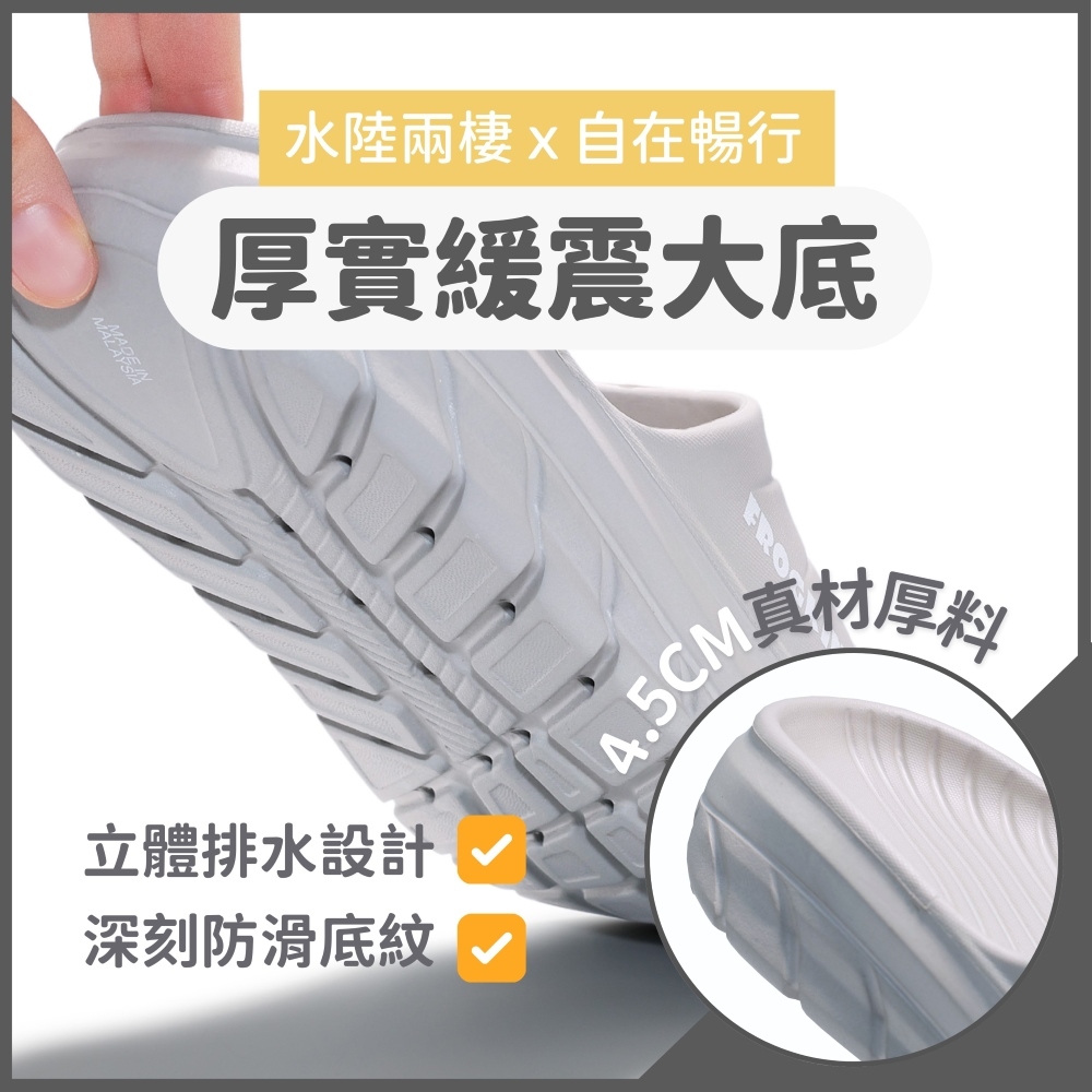 [晴雨兩穿] FROGKING 男女鞋 厚實緩震 4.5CM高彈健走紓壓拖鞋 厚底拖鞋 休閒拖鞋 戶外拖鞋 F-125黑色,36/37|黑色,38/39|黑色,40/41|黑色,42/43|黑色,44/45|水泥灰,36/37|水泥灰,38/39|水泥灰,40/41|水泥灰,42/43|水泥灰,44/45Health SlippersC&D SHOES