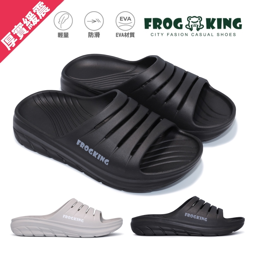 • [緩震健走] FROGKING 男女鞋 厚實緩震 4.5CM高彈健走紓壓拖鞋 厚底拖鞋 休閒拖鞋 戶外拖鞋