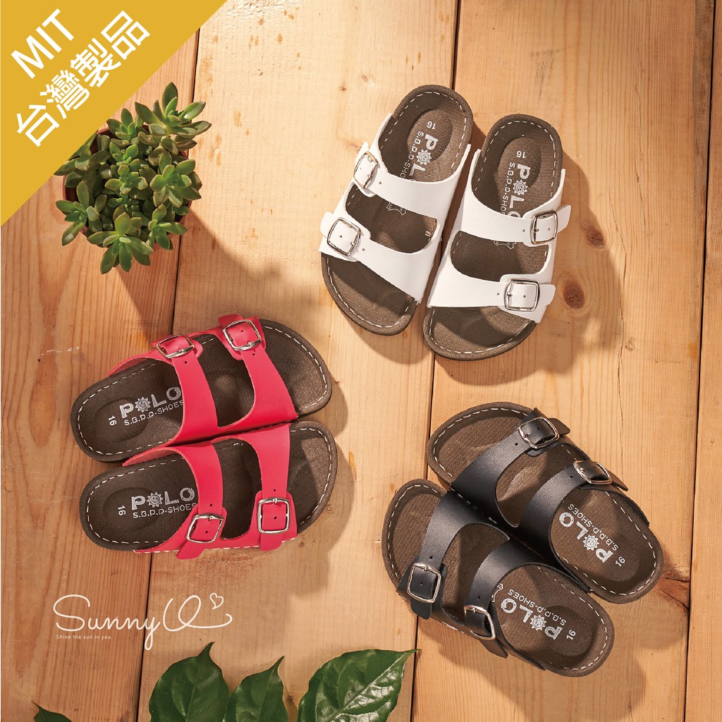 • [售完不補] POLO MIT 台灣製 童鞋 金屬方釦休閒童拖鞋 309