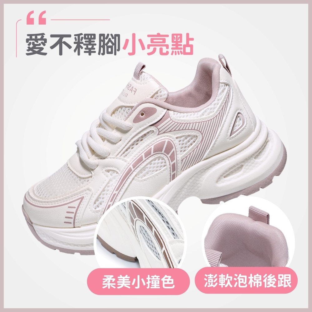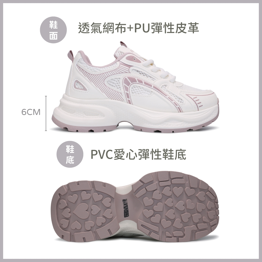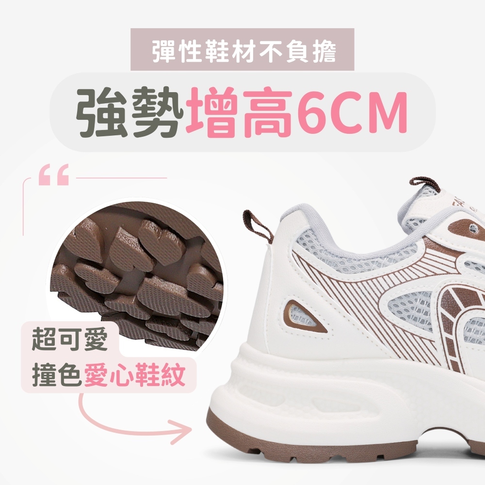 C&D 女鞋 6CM增高 輕甜系透氣大網眼厚底老爹鞋 休閒鞋 鬆糕鞋 運動鞋