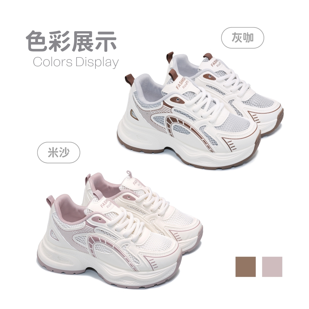 C&D 女鞋 6CM增高 輕甜系透氣大網眼厚底老爹鞋 休閒鞋 鬆糕鞋 運動鞋灰咖,36|灰咖,39|灰咖,37|灰咖,40|灰咖,38|米沙,36|米沙,39|米沙,37|米沙,40|米沙,38C&D SHOES
