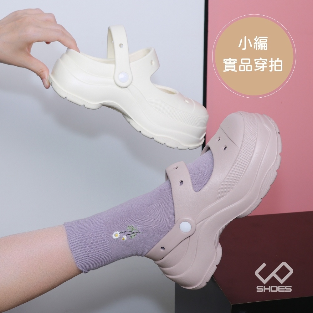 • [下雨不愁] C&D 女鞋 超輕量防水厚底瑪莉珍洞洞鞋 涼鞋 拖鞋 穆勒鞋 沙灘鞋 花園鞋