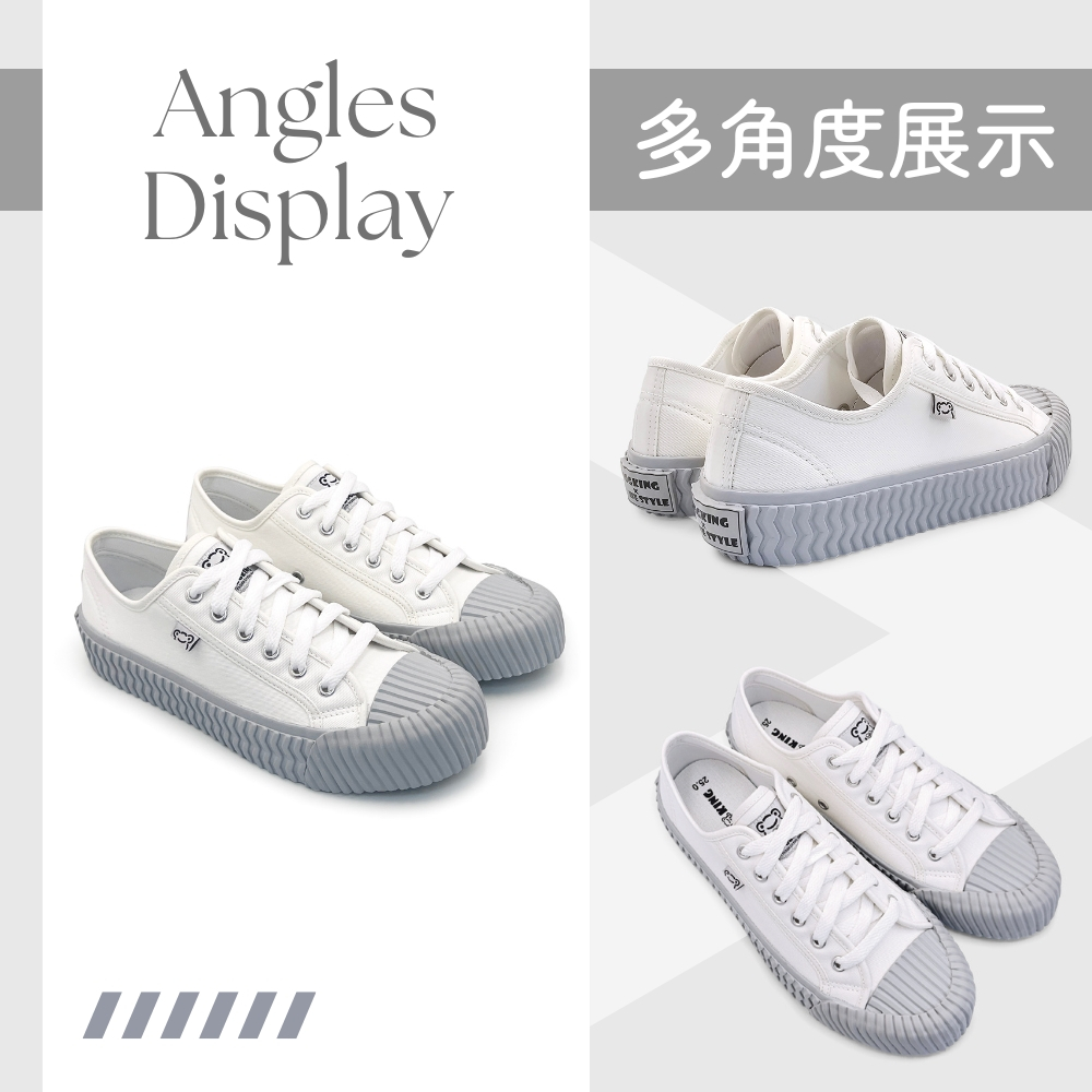 • [抗汙防潑水] FROGKING MIT男女款 舒適帆布餅乾鞋 休閒鞋 帆布鞋 平底鞋 餅乾鞋 白灰 F-0097