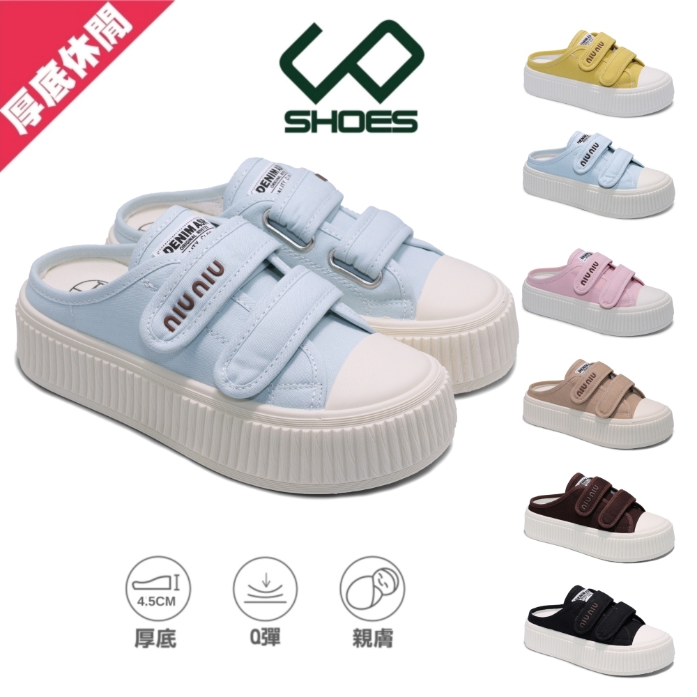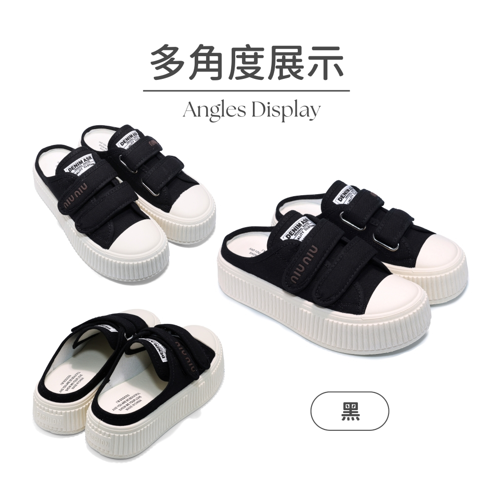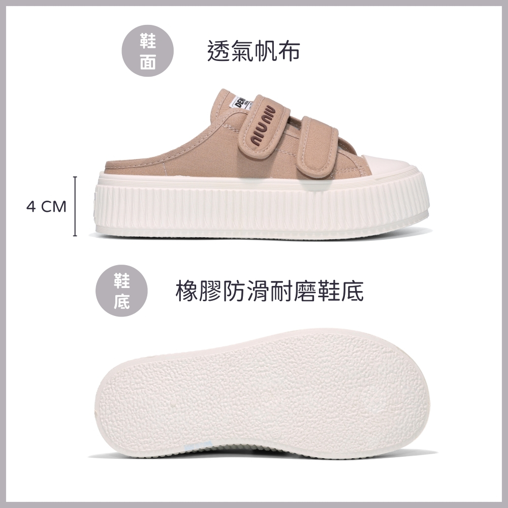 • C&D 女鞋 4CM厚底增高魔鬼氈帆布奶油餅乾穆勒鞋 半拖鞋 半包鞋 前包後空 包頭鞋 餅乾鞋 休閒鞋 帆布鞋