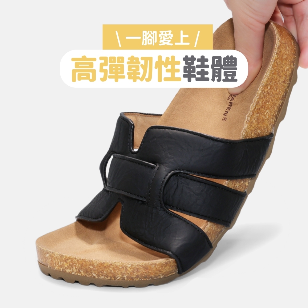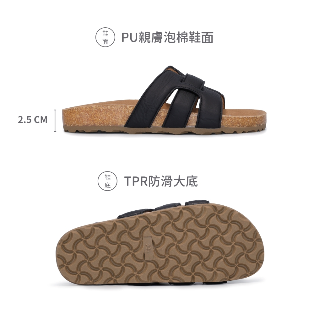 [趁今天免運] POLO 台灣製 MIT 男女鞋 情侶鞋 超輕量質感雙釦休閒厚底拖鞋 男鞋 女鞋 戶外拖鞋 黑色