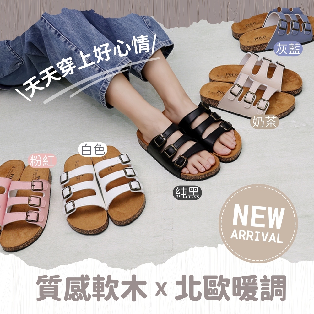 [趁今天免運] POLO MIT 台灣製 女鞋 交叉寬帶休閒厚底拖鞋 休閒拖鞋 時尚拖鞋 韓風拖鞋 737
