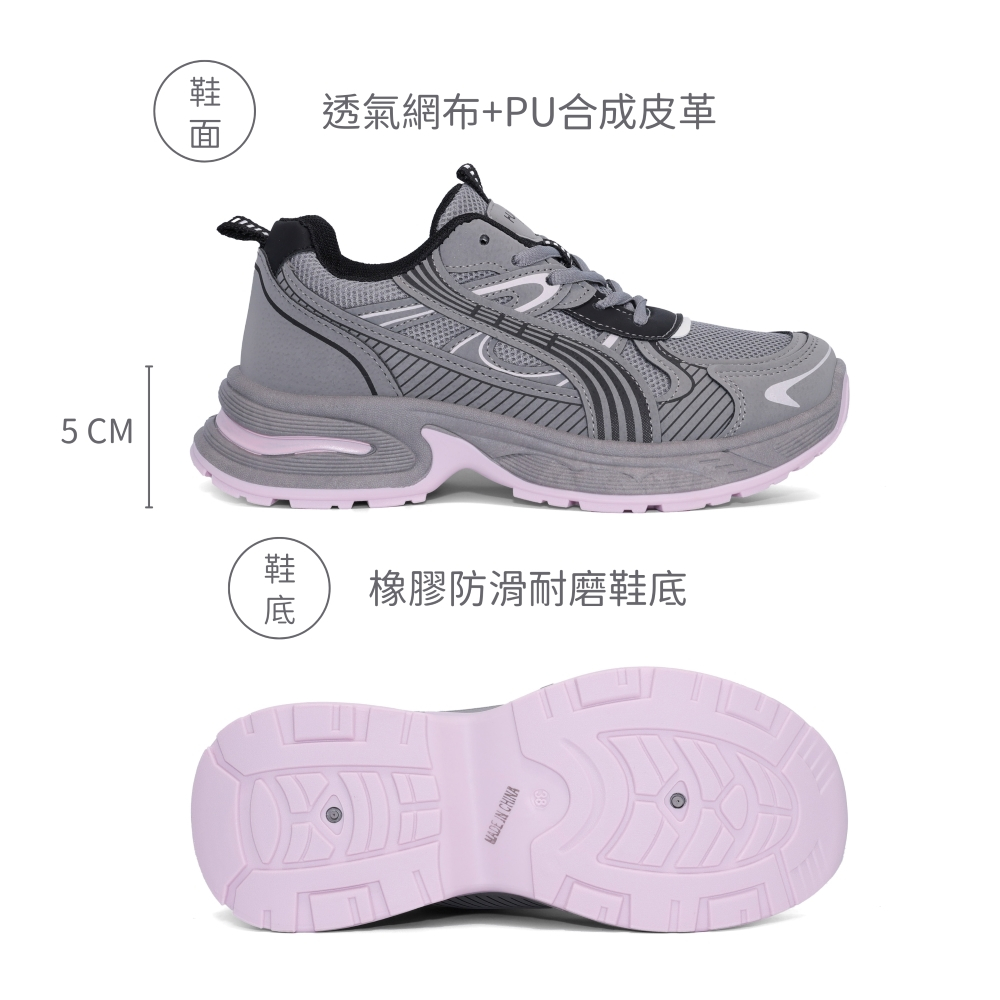 C&D 女鞋 5CM厚底增高酷甜風老爹鞋 透氣 休閒鞋灰色,36|灰色,37|灰色,38|灰色,39|灰色,40|粉色,36|粉色,37|粉色,38|粉色,39|粉色,40C&D SHOES