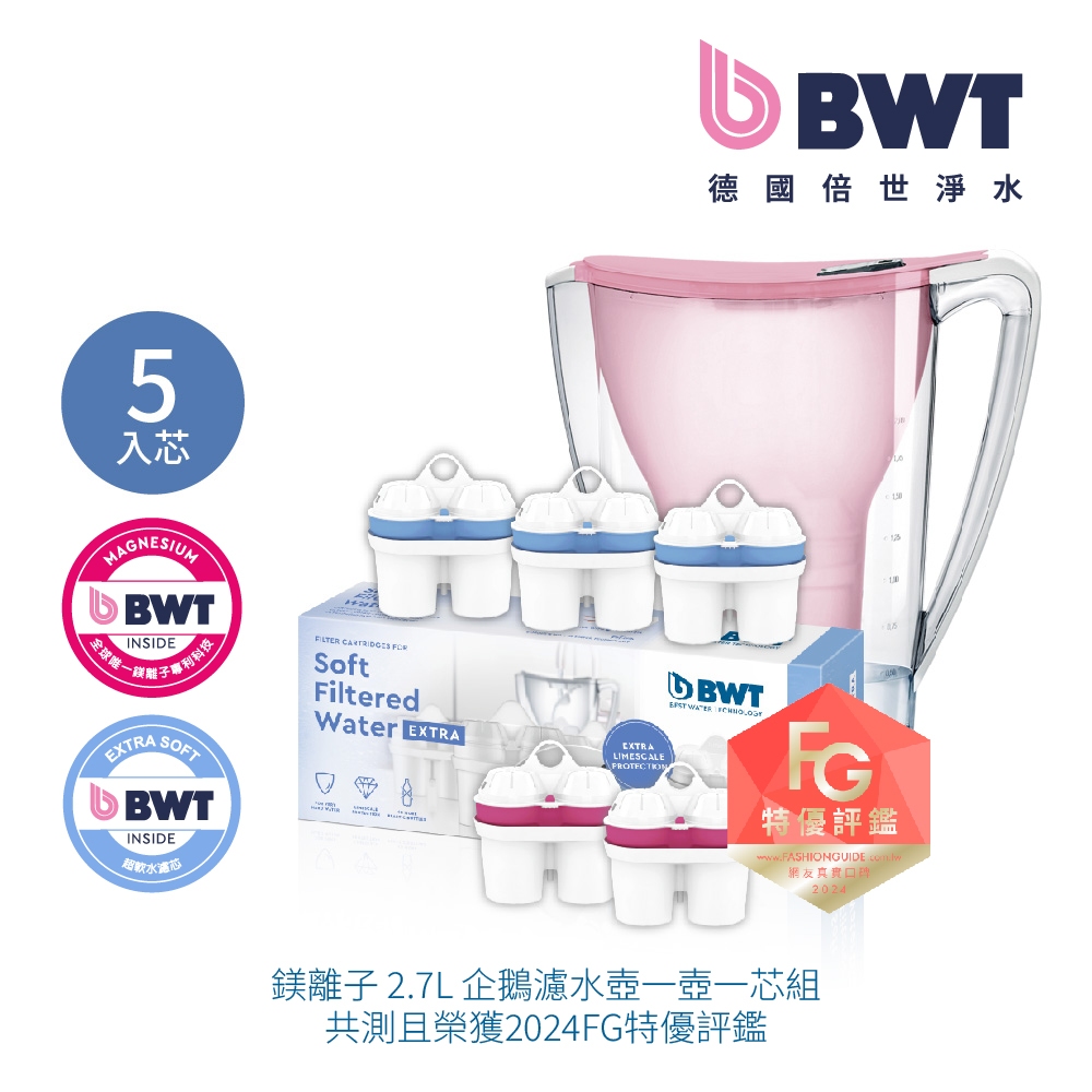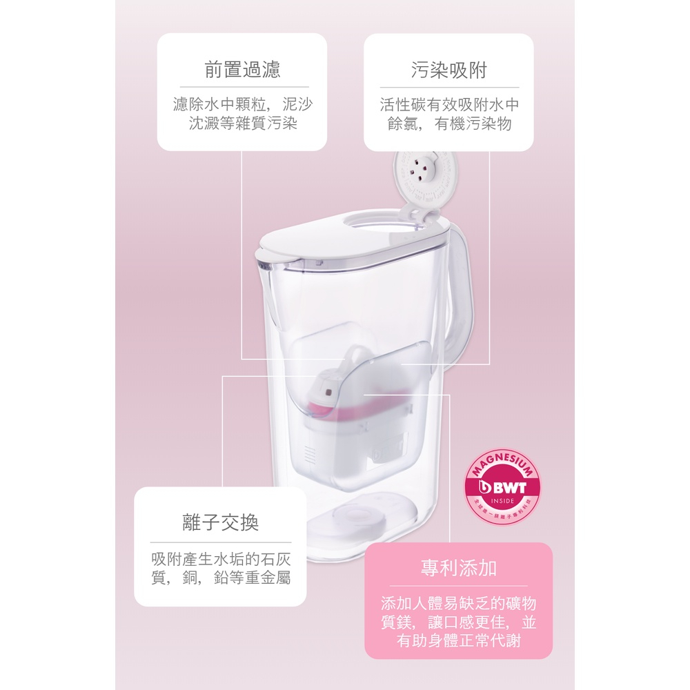 【BWT 德國倍世】2.7L濾水壺 淨水壺 桌上壺 1壺5芯 Penguin企鵝壺 鎂離子濾芯*2 + 軟水離子濾芯*3粉色|白色Jugs, Pitchers & AccessoriesBWT德國倍世官方旗艦店