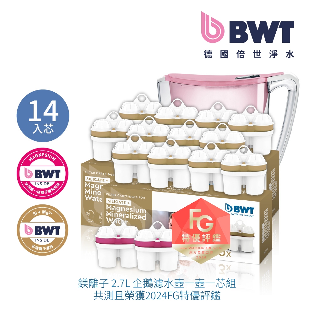 【BWT 德國倍世】2.7L濾水壺 淨水壺 桌上壺 1壺14芯 Penguin企鵝壺 鎂離子濾芯*2+矽鎂離子濾芯*12粉色|白色Water Filters, Coolers & DispensersBWT德國倍世官方旗艦店