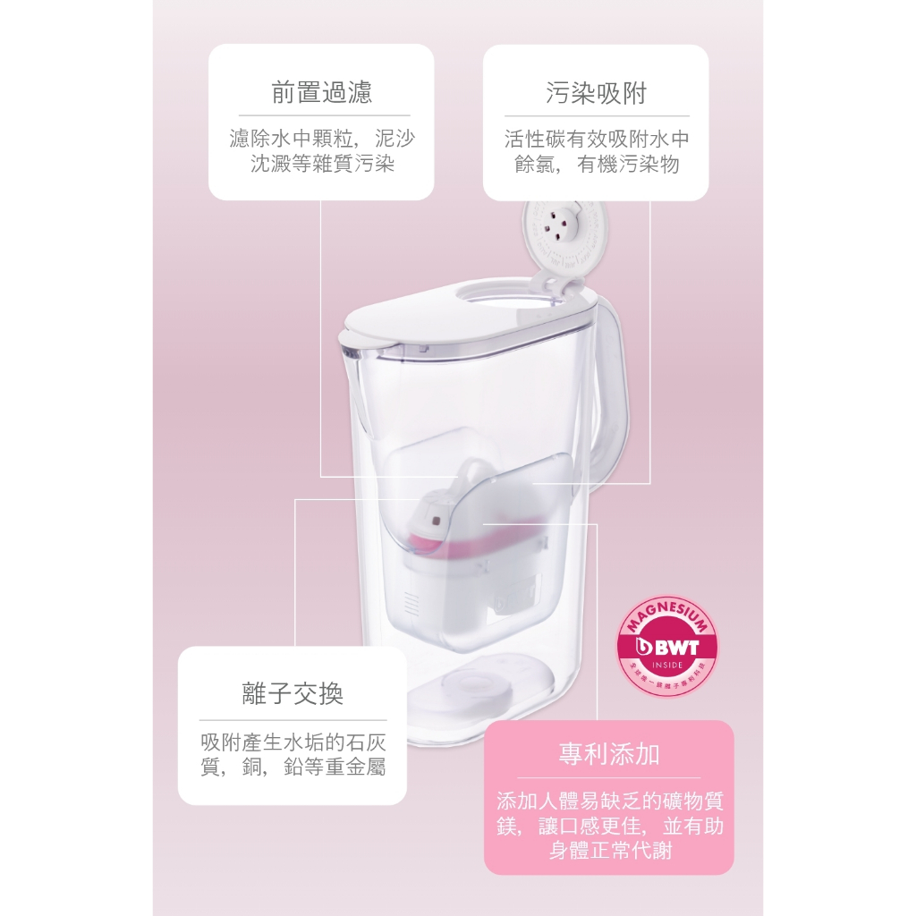 【BWT 德國倍世】健康濾水壺- VIDA 2.6L 樂樂濾水壺 1壺4芯 矽鎂離子濾芯*3 + 鎂離子濾芯*1寶貝藍|夢幻粉|天使白Water Filters, Coolers & DispensersBWT德國倍世官方旗艦店