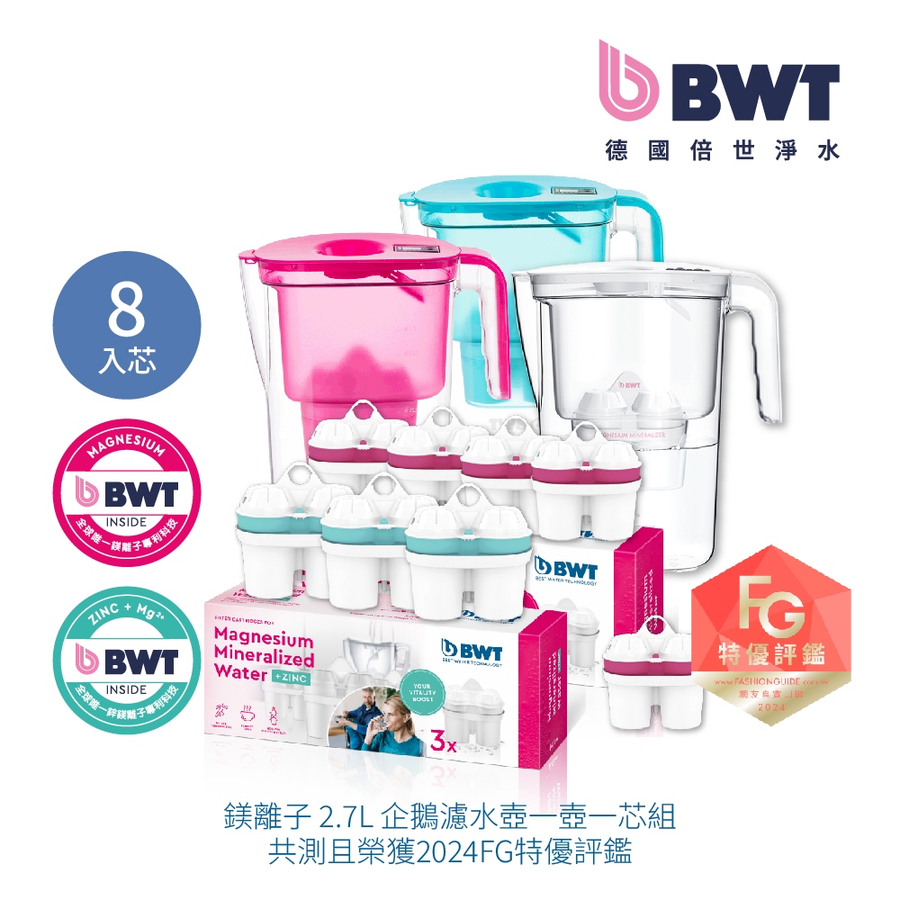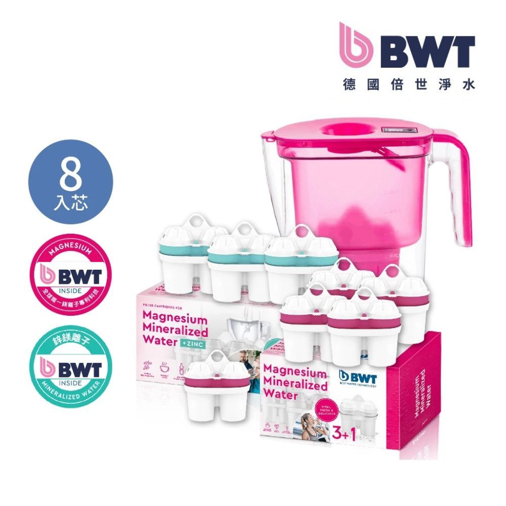 【BWT 德國倍世】健康濾水壺- VIDA 2.6L 樂樂濾水壺 1壺8芯 鋅鎂離子濾芯*3 + 鎂離子濾芯*5寶貝藍|夢幻粉|天使白Water Filters, Coolers & DispensersBWT德國倍世官方旗艦店