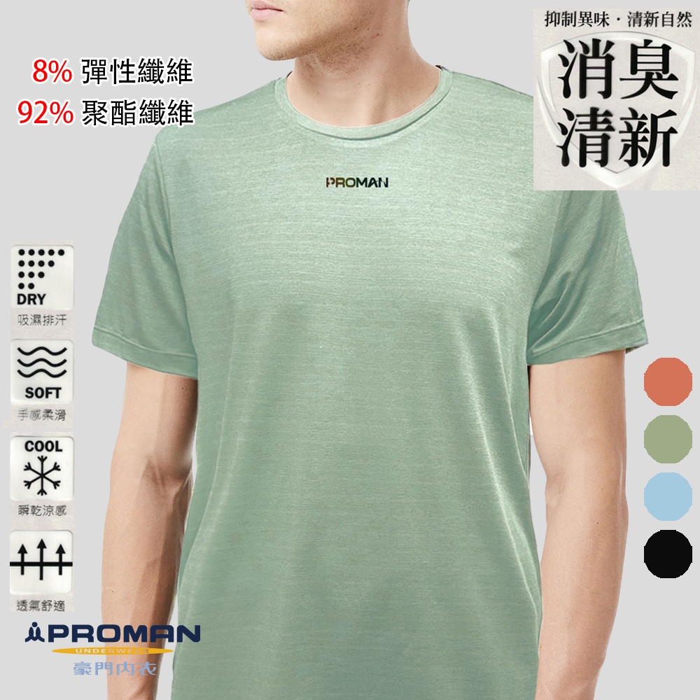 PROMAN 豪門 運動型男薄荷消臭速乾舒爽圓領短袖衫(黑.藍.綠.橘/四色可選)消臭技術 抑制異味 瞬乾涼感黑,M|黑,L|黑,XL|藍,M|藍,L|藍,XL|綠,M|綠,L|綠,XL|橘,M|橘,L|橘,XLT-ShirtsBVD 品牌旗艦店