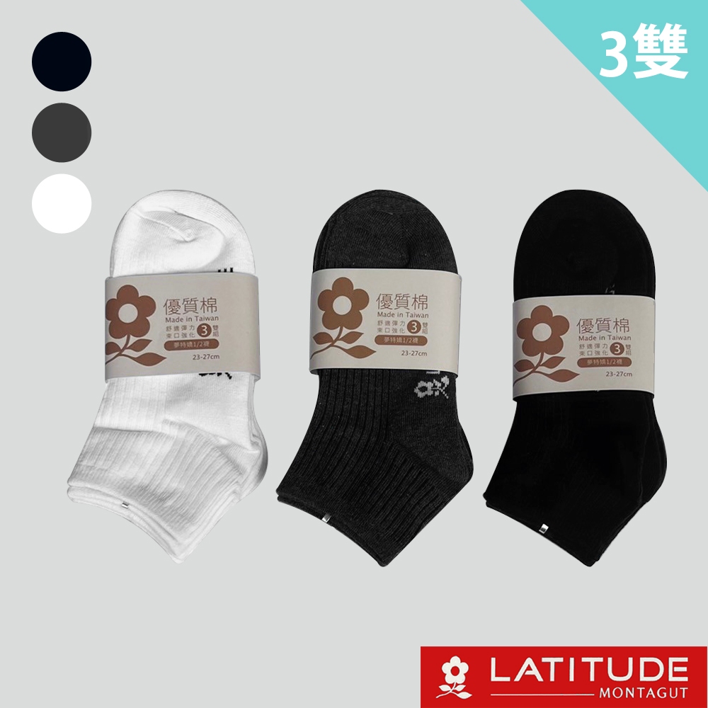 MONTAGUT夢特嬌 MIT台灣製優質棉1/2襪-3雙/組(MT-S3201)白|黑|灰BVD 品牌旗艦店