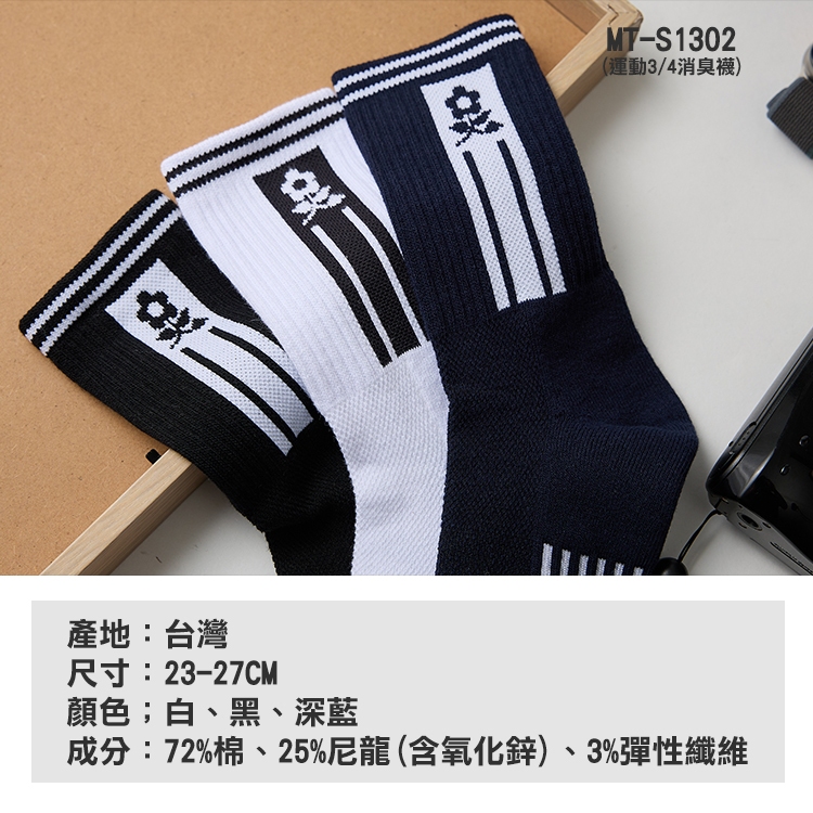 MONTAGUT夢特嬌 MIT台灣製運動3/4消臭襪(MT-S1302)白|黑|深藍BVD 品牌旗艦店