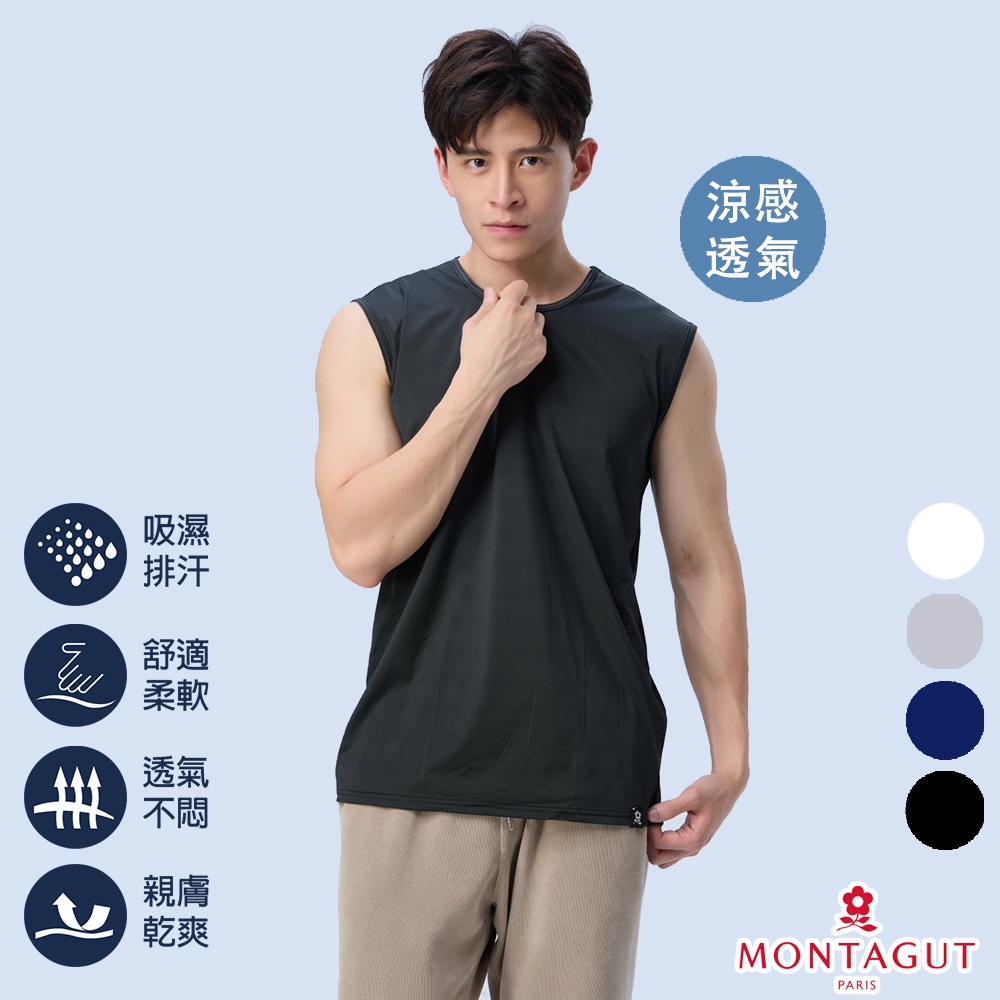 【MONTAGUT夢特嬌】極致涼感速乾無袖衫/無袖 男內衣 涼感 透氣 速乾 排汗白,M|白,L|白,XL|淺灰,M|淺灰,L|淺灰,XL|丈青,M|丈青,L|丈青,XL|黑,M|黑,L|黑,XLTanksBVD 品牌旗艦店