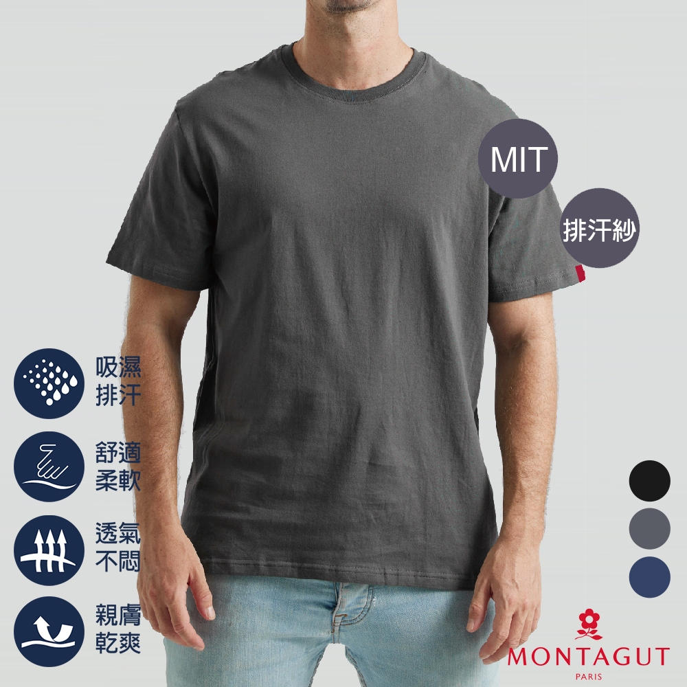 【MONTAGUT夢特嬌】MIT台灣製素面圓領排汗衫黑色,M|黑色,L|黑色,XL|深灰,M|深灰,L|深灰,XL|丈青,M|丈青,L|丈青,XLT-ShirtsBVD 品牌旗艦店