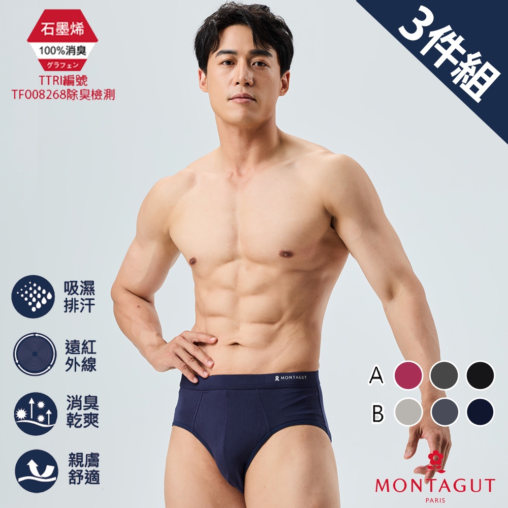 【MONTAGUT夢特嬌】金典石墨烯彈力透氣三角褲(3件/盒)A款(黑.紅.深灰/盒),M|A款(黑.紅.深灰/盒),L|A款(黑.紅.深灰/盒),XL|B款(丈青.淺灰.中灰/盒),M|B款(丈青.淺灰.中灰/盒),L|B款(丈青.淺灰.中灰/盒),XLUnderwearBVD 品牌旗艦店