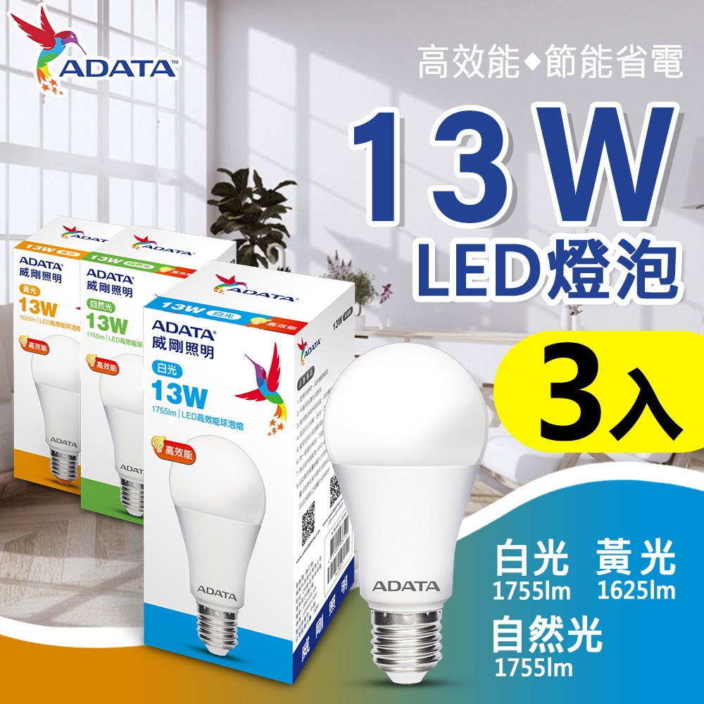 (3入組)威剛 13W LED E27燈泡 球泡燈 大廣角 高亮度 壽命長 省電 白光 黃光 自然光3入組,白光|3入組,黃光|3入組,自然光Buy Lighting_專業照明