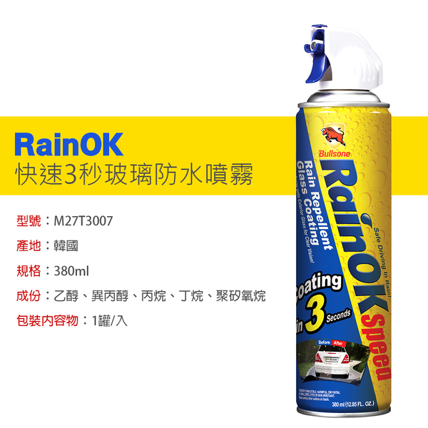 【超值3入】勁牛王 Bullsone RainOK 快速3秒玻璃撥水鍍膜 免雨刷 玻璃撥水 安全帽撥水 鏡面撥水【超值3入】勁牛王 Bullsone RainOK 快速3秒玻璃撥水鍍膜 免雨刷 玻璃撥水 安全帽撥水 鏡面撥水Glass Care & Water RepellentsBullsone勁牛王 BalanceOn倍力舒【官方旗艦店】