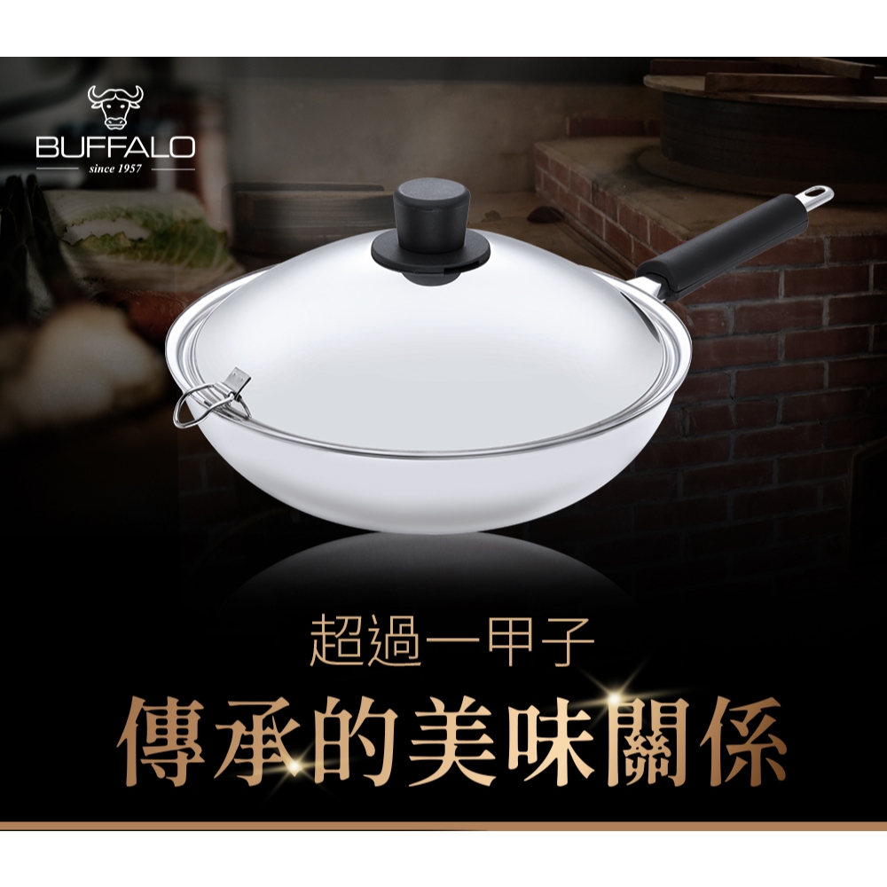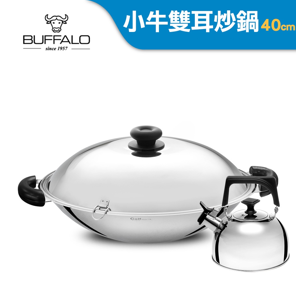 【Buffalo牛頭牌】小牛雙耳炒鍋40cm|特選食品級304不鏽鋼 深炒鍋 大容量 耐刮耐用 物理不沾鍋)雙耳炒鍋40cm|雙耳炒鍋40cm+笛音壺5公升PansBUFFALO牛頭牌炊具 官方旗艦店