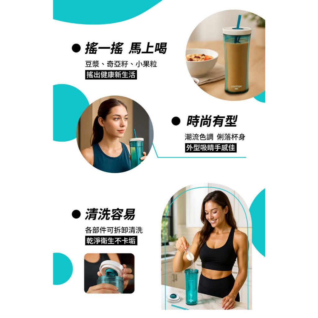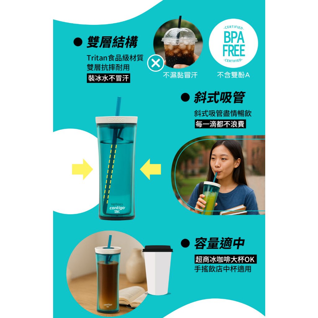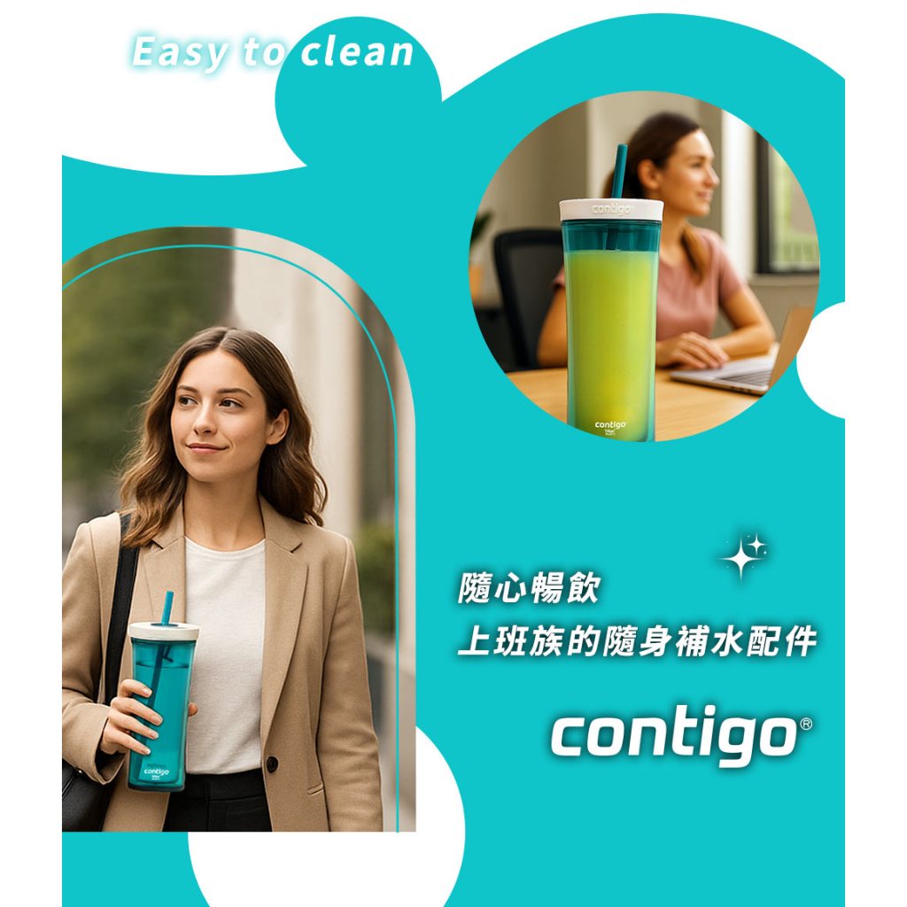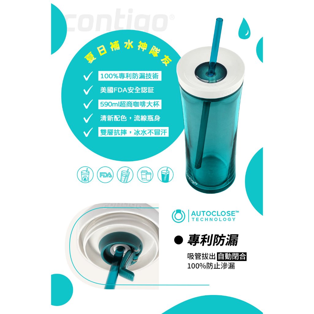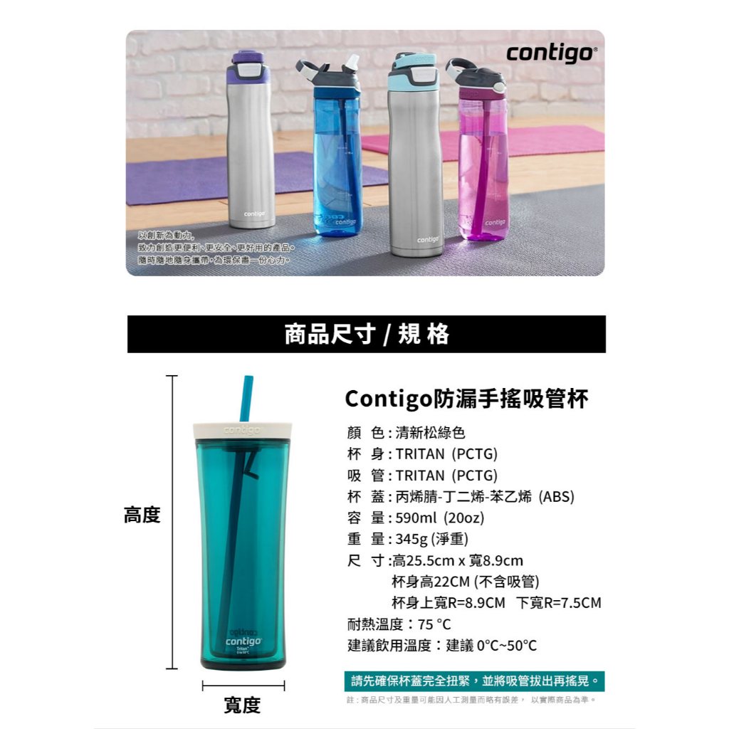 【美國Contigo】 防漏手搖吸管杯590CC-松綠色|辦公杯 防漏 暢飲 台灣公司貨 環保杯 吸管水壺 飲料杯1入|2入優惠Cups, Mugs & GlassesBUFFALO牛頭牌炊具 官方旗艦店