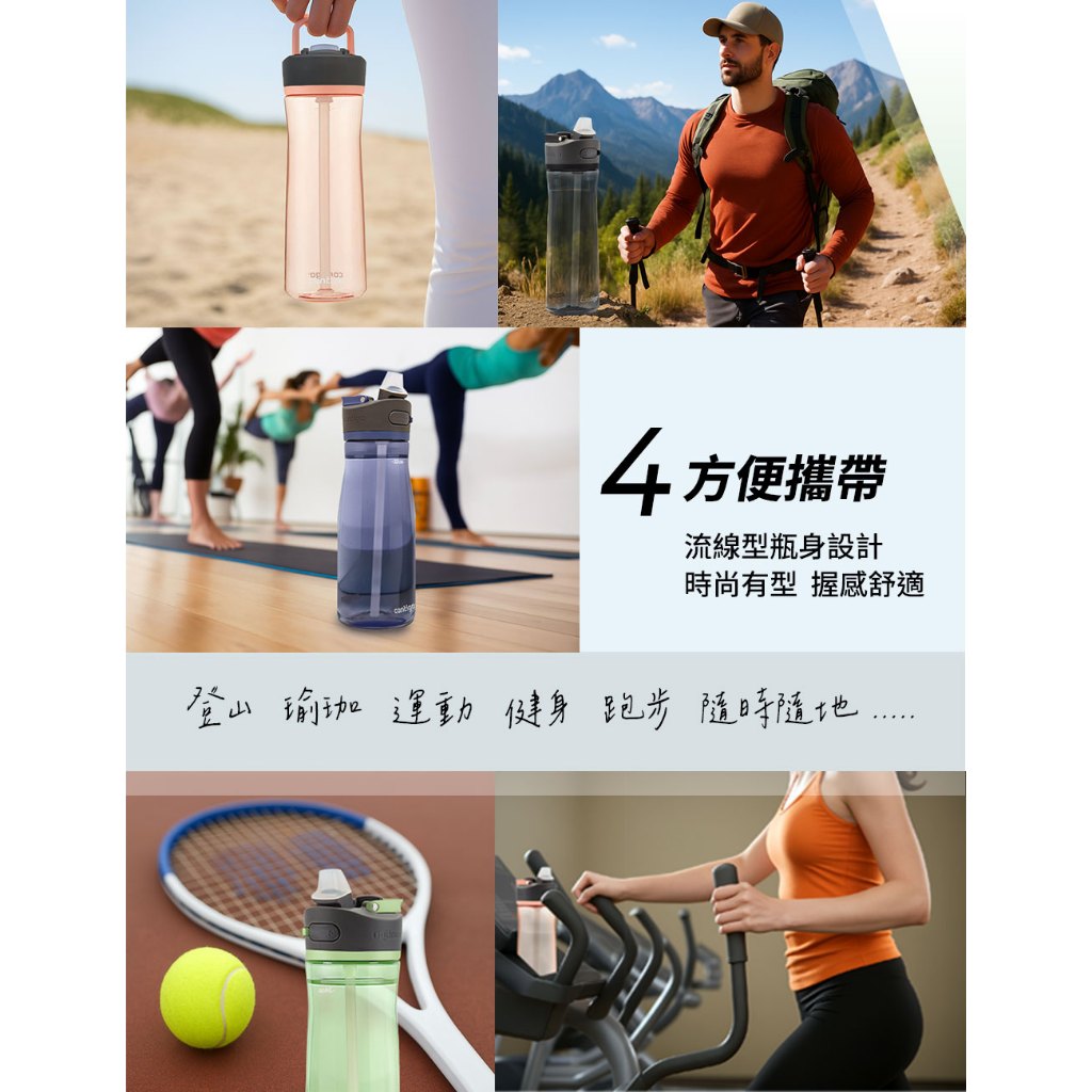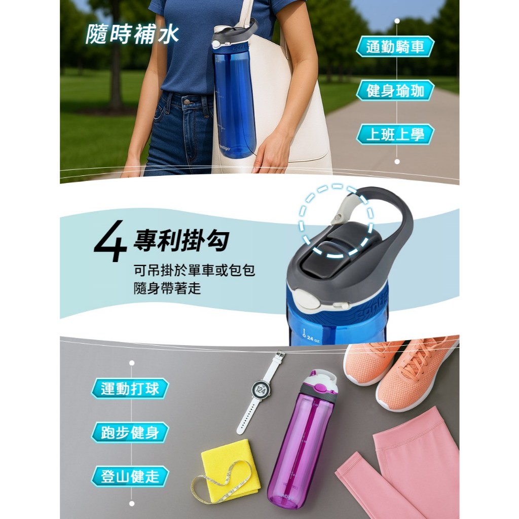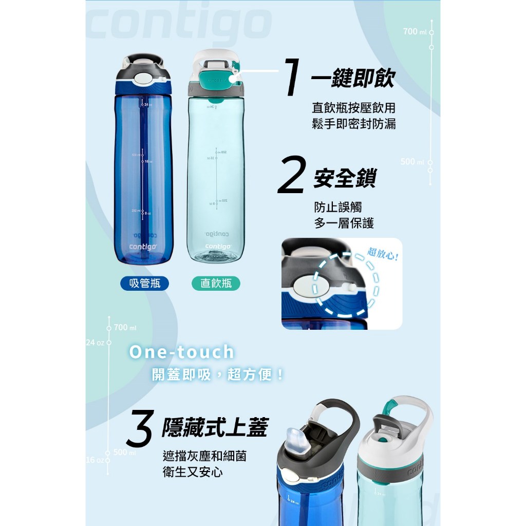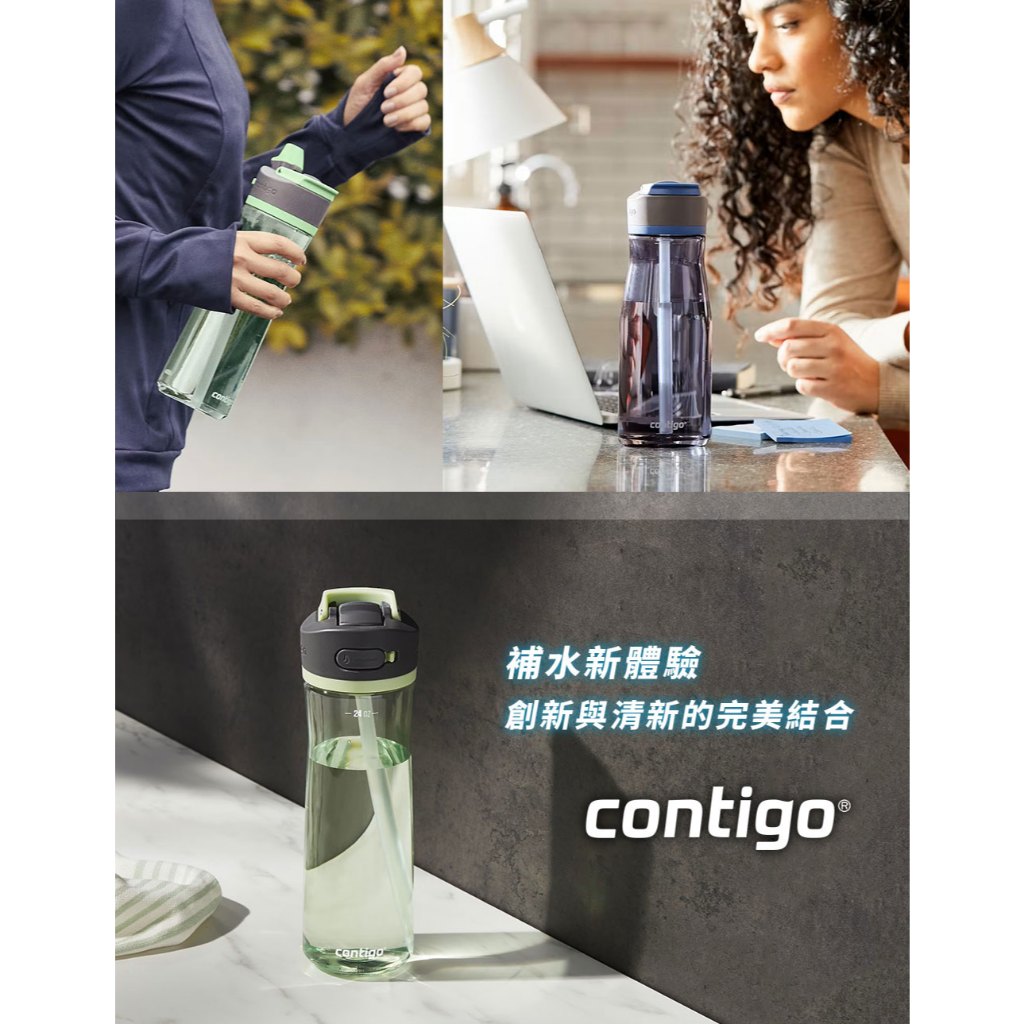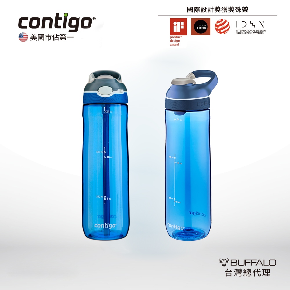 【美國CONTIGO】買1送1_Tritan防漏彈蓋吸管瓶 直飲瓶709ml|台灣總代理 運動水瓶 水壺 吸嘴吸管瓶+吸管瓶|吸管瓶+直飲瓶|直飲瓶+直飲瓶Fitness EquipmentBUFFALO牛頭牌炊具 官方旗艦店