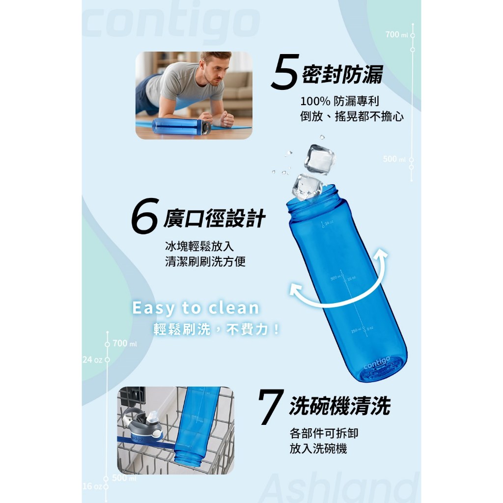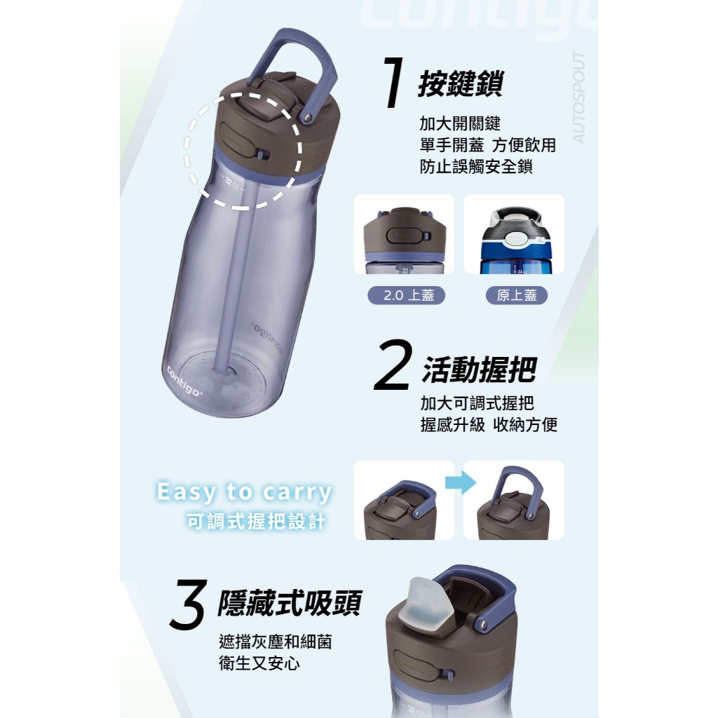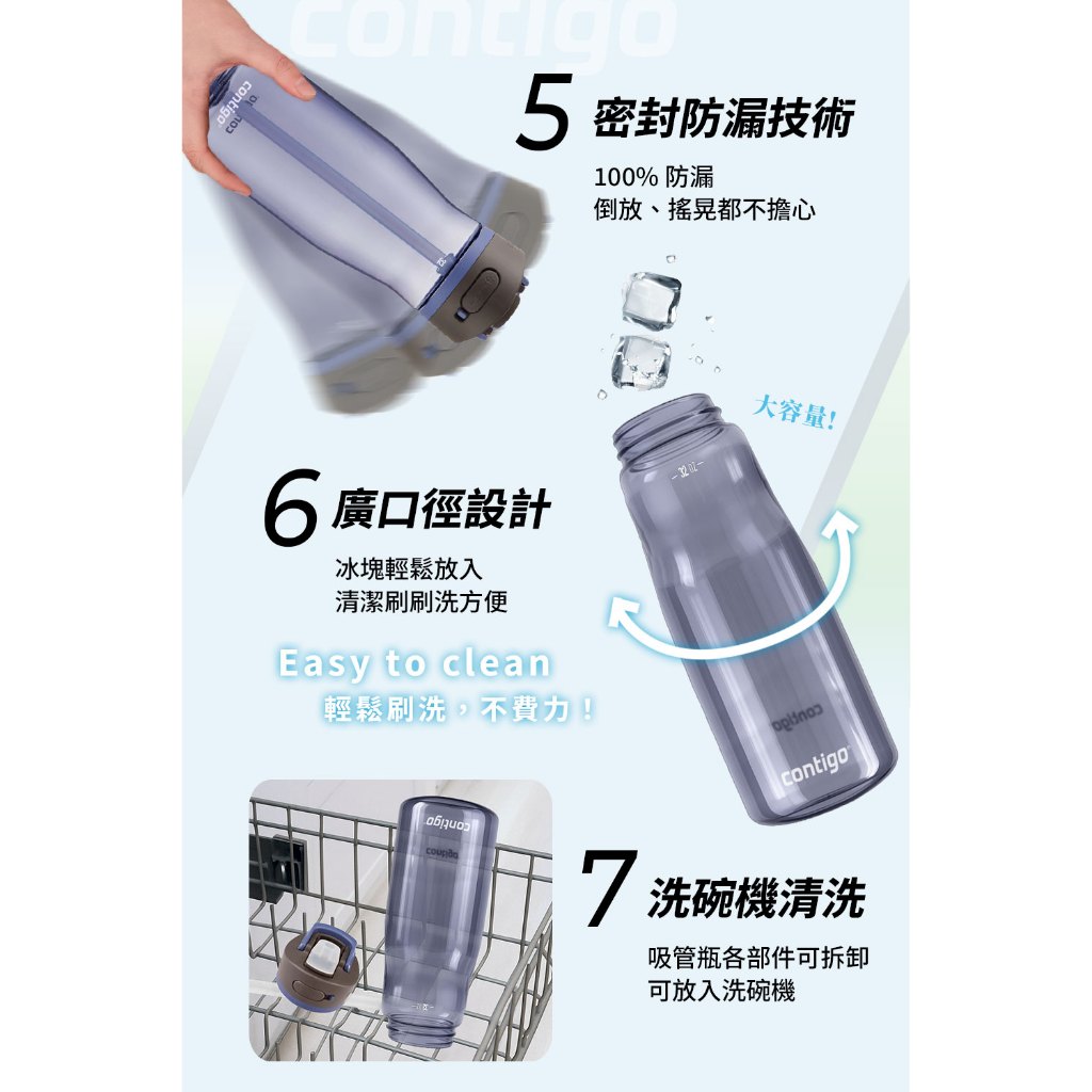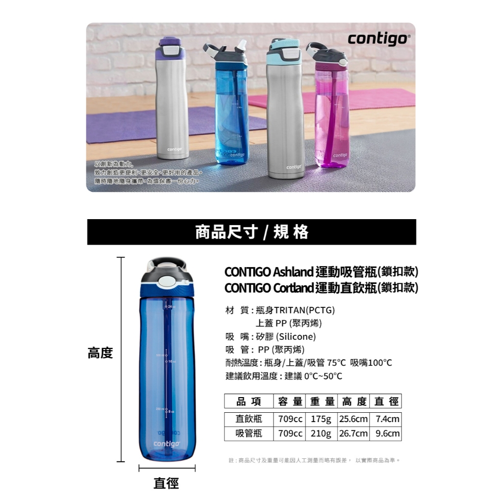 【美國CONTIGO】買1送1_Tritan防漏彈蓋吸管瓶 直飲瓶709ml|台灣總代理 運動水瓶 水壺 吸嘴吸管瓶+吸管瓶|吸管瓶+直飲瓶|直飲瓶+直飲瓶Fitness EquipmentBUFFALO牛頭牌炊具 官方旗艦店