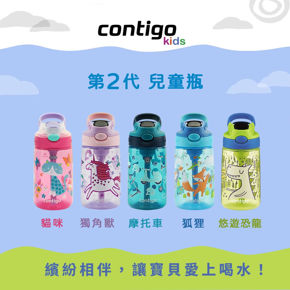 【美國Contigo】防漏兒童吸管瓶414ml|台灣總代理公司貨 100%防塵防漏 兒童水壺 水杯 水瓶 吸嘴貓咪|狐狸|摩托車|獨角獸|兩入優惠(請備註款式,缺貨的勿下單)|恐龍UtensilsBUFFALO牛頭牌炊具 官方旗艦店