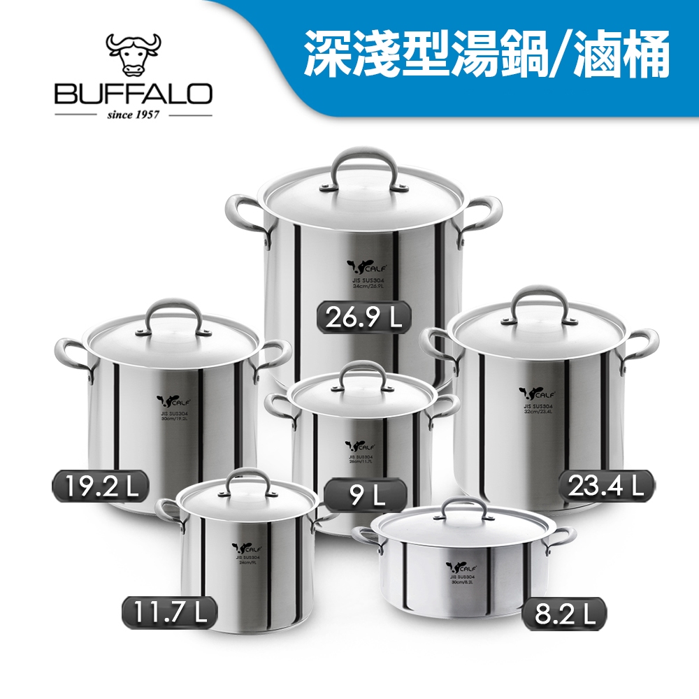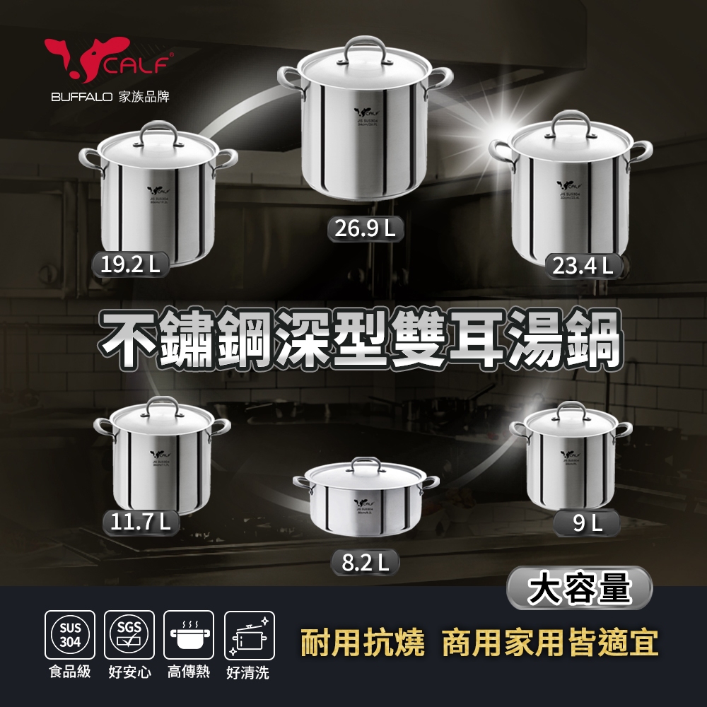 【Buffalo牛頭牌】304不鏽鋼深型雙耳湯鍋(多種尺寸任選)|IH.電磁爐適用 燉湯鍋 魯桶 滷桶 營業用24x20cm(9L)深型|26x22cm(11.7L)深型|30x27cm(19.2L)深型|32x29cm(23.4L)深型|34x30cm (26.9L)深型|30x12cm(8.2L)淺型PotsBUFFALO牛頭牌炊具 官方旗艦店