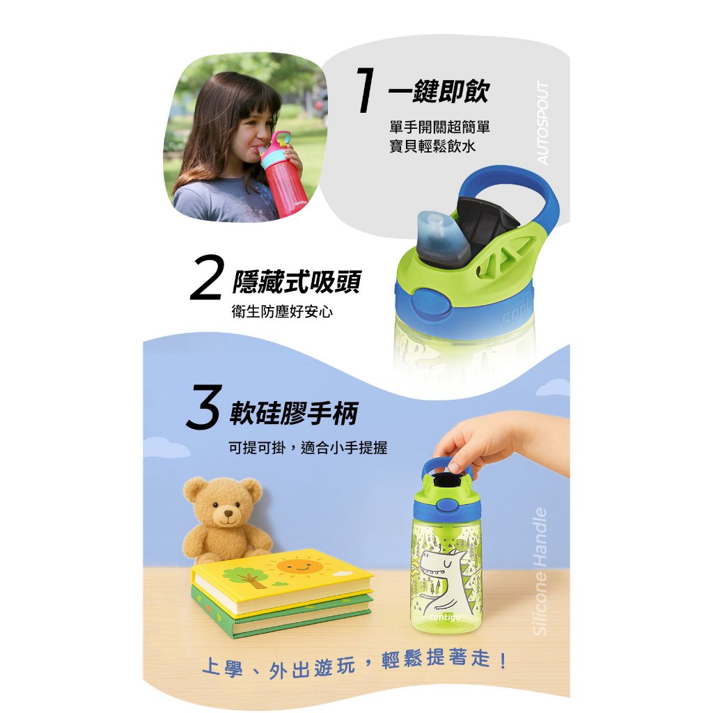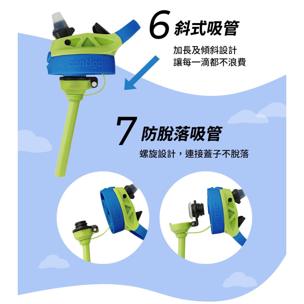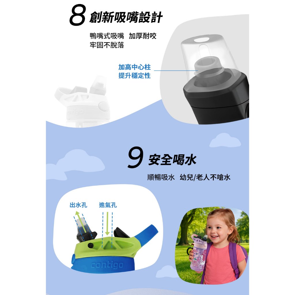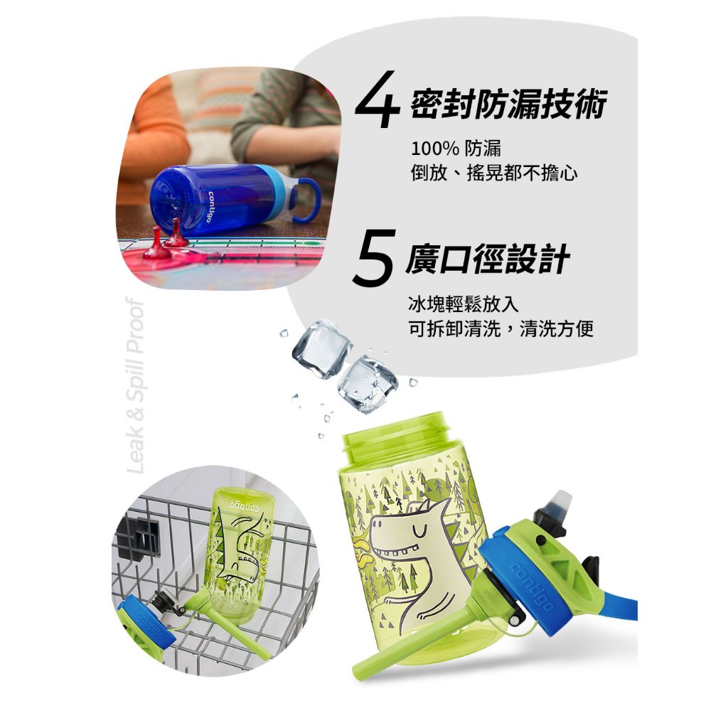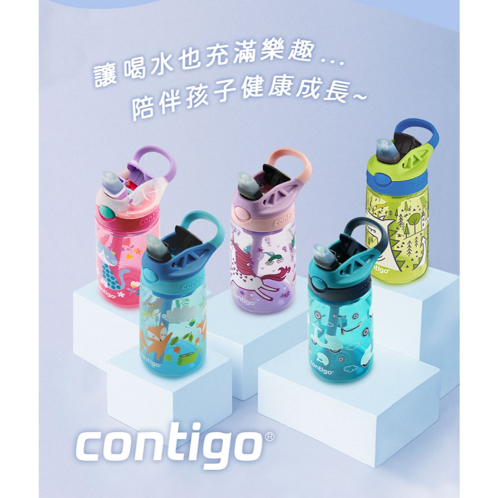 【美國Contigo】防漏兒童吸管瓶414ml|台灣總代理公司貨 100%防塵防漏 兒童水壺 水杯 水瓶 吸嘴