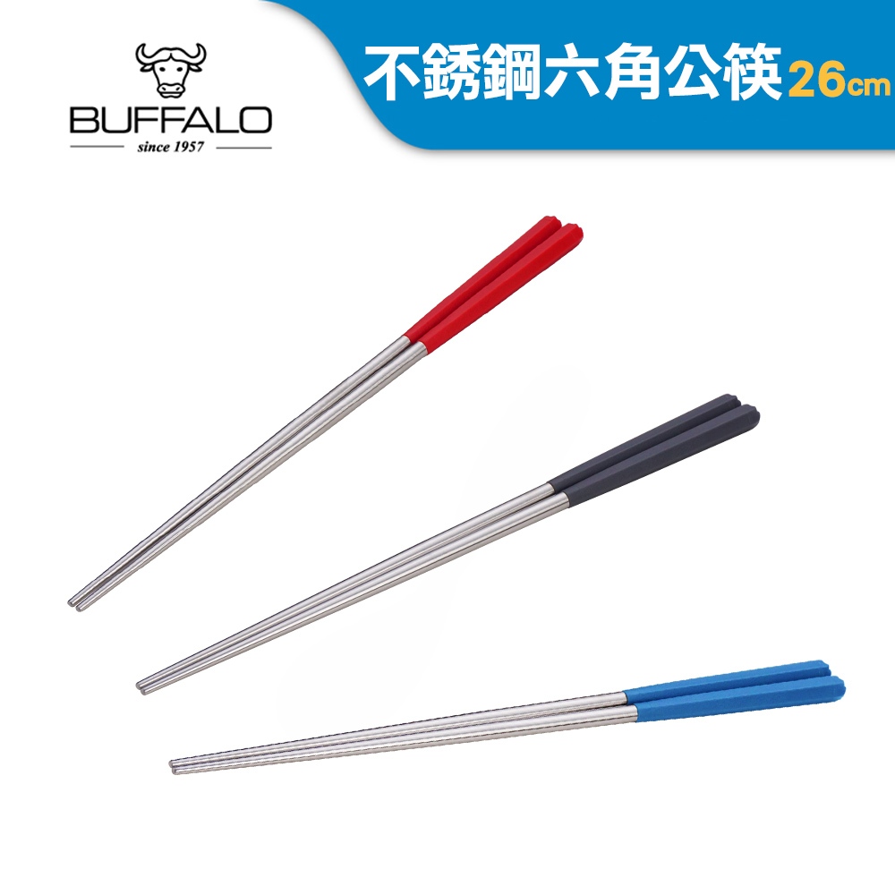 【Buffalo牛頭牌】304不鏽鋼複合六角公筷26cm,1雙|營業用 台灣製造 火鍋筷 料理筷 適用洗碗機 檢驗合格5雙(請備註顏色)|10雙(請備註顏色)CutleriesBUFFALO牛頭牌炊具 官方旗艦店