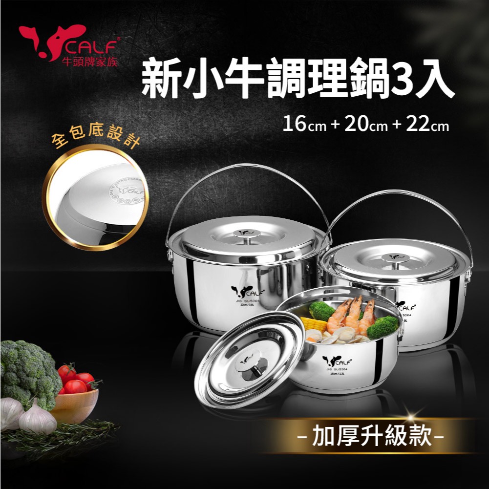 【Buffalo牛頭牌】新小牛304不鏽鋼加厚底調理鍋三入組(16+20+22cm)|IH.電磁爐適用 湯鍋 電鍋內鍋【Buffalo牛頭牌】新小牛304不鏽鋼加厚底調理鍋三入組(16+20+22cm)|IH.電磁爐適用 湯鍋 電鍋內鍋PotsBUFFALO牛頭牌炊具 官方旗艦店