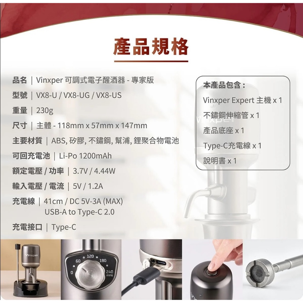 全球第四代-可調式電子醒酒器【VINXPER EXPERT 智慧侍酒師】槍色 簡單操作 usb充電 露營必備 開酒不用等全球第四代-可調式電子醒酒器【VINXPER EXPERT 智慧侍酒師】槍色 簡單操作 usb充電 露營必備 開酒不用等Tea, Coffee & Bartending EquipmentsBubble Soda官方旗艦店