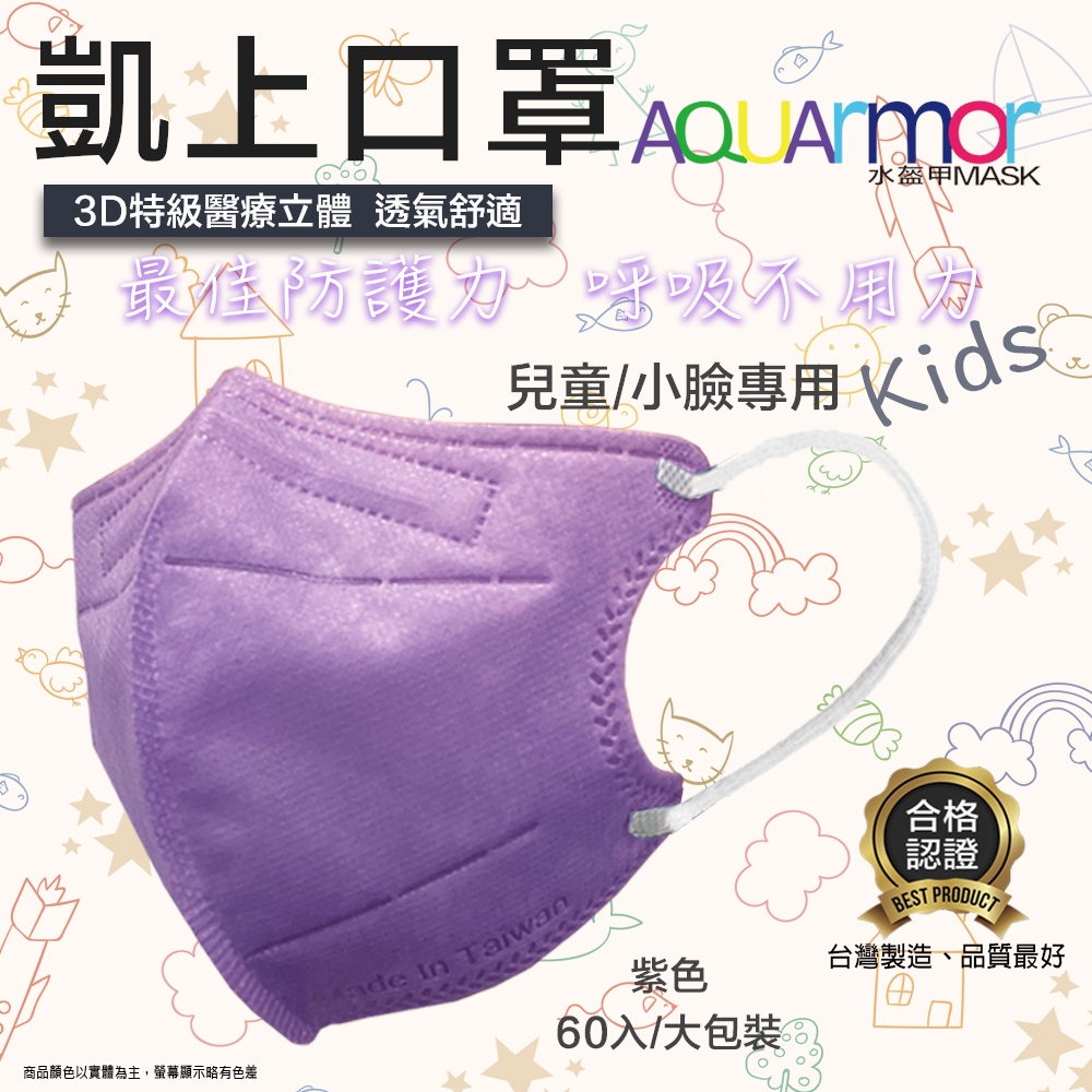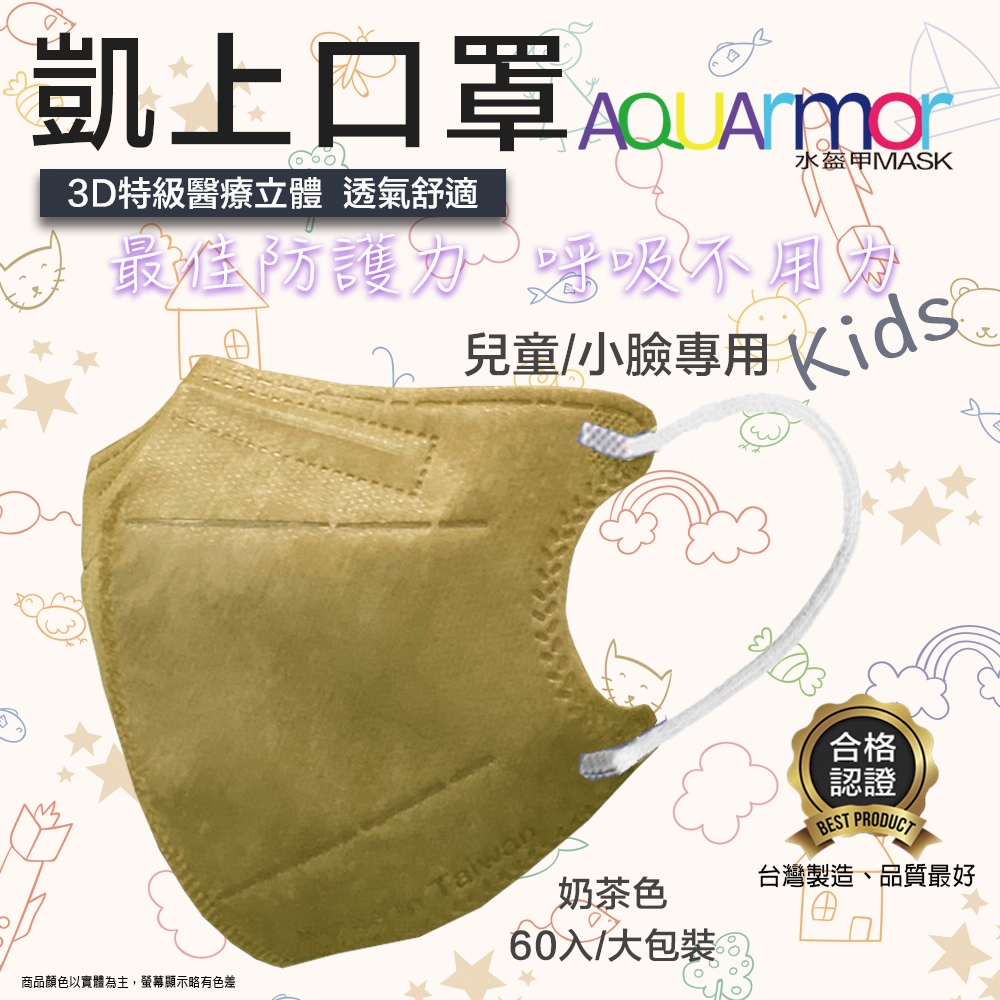 【凱上X固材】 兒童3D水駐極醫療級台灣製雙鋼印水口罩-多色白耳帶 60入(大包裝)/多色可選嬰兒粉|米可色|藍色|黛妃紫|茶棕色|淡藍色|薰衣草|灰色|淡黃色|紫色|奶茶色|草本綠|深灰Medical Gloves & MasksBubble Soda官方旗艦店