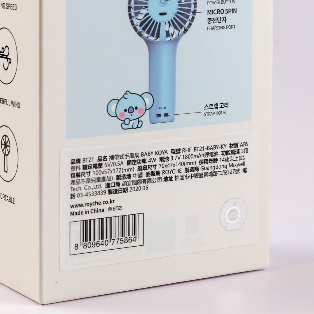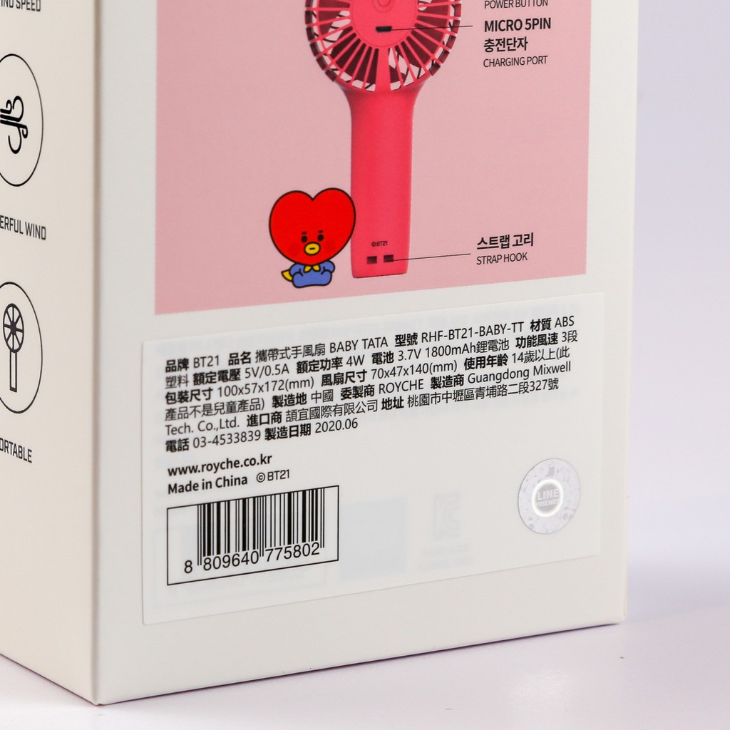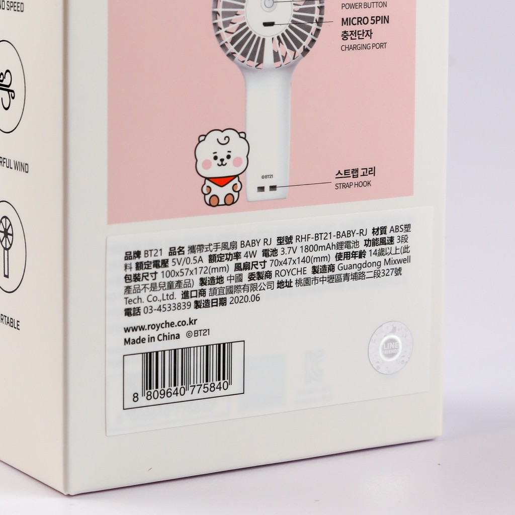 BT21 MINI HANDY FAN 攜帶式手風扇[ 現貨供應 ]RJ|CHIMMY|TATA|COOKY|KOYAUSB & Mobile FansBTS & BT21💜 正版商品台灣現貨經銷販售