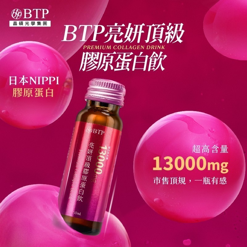 BTP【亮妍頂級膠原蛋白飲 x1瓶】 (1入/50ml) NIPPI 膠原蛋 燕窩酸 米萃取 保健食品 Q10 養顏美BTP【亮妍頂級膠原蛋白飲 x1瓶】 (1入/50ml) NIPPI 膠原蛋 燕窩酸 米萃取 保健食品 Q10 養顏美Beauty SupplementsBTP晶澈 | 晶碩光學集團