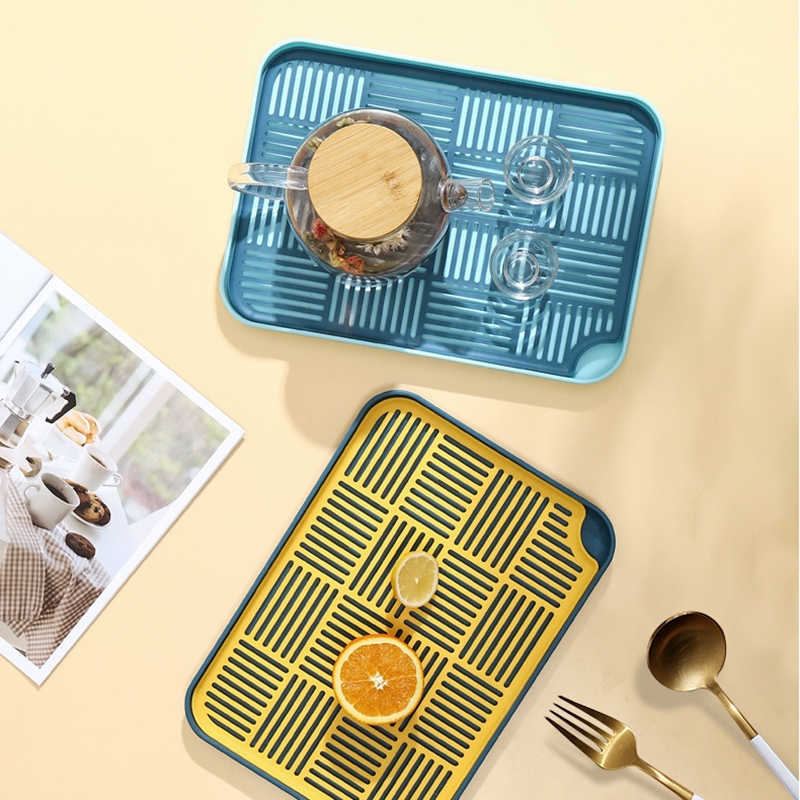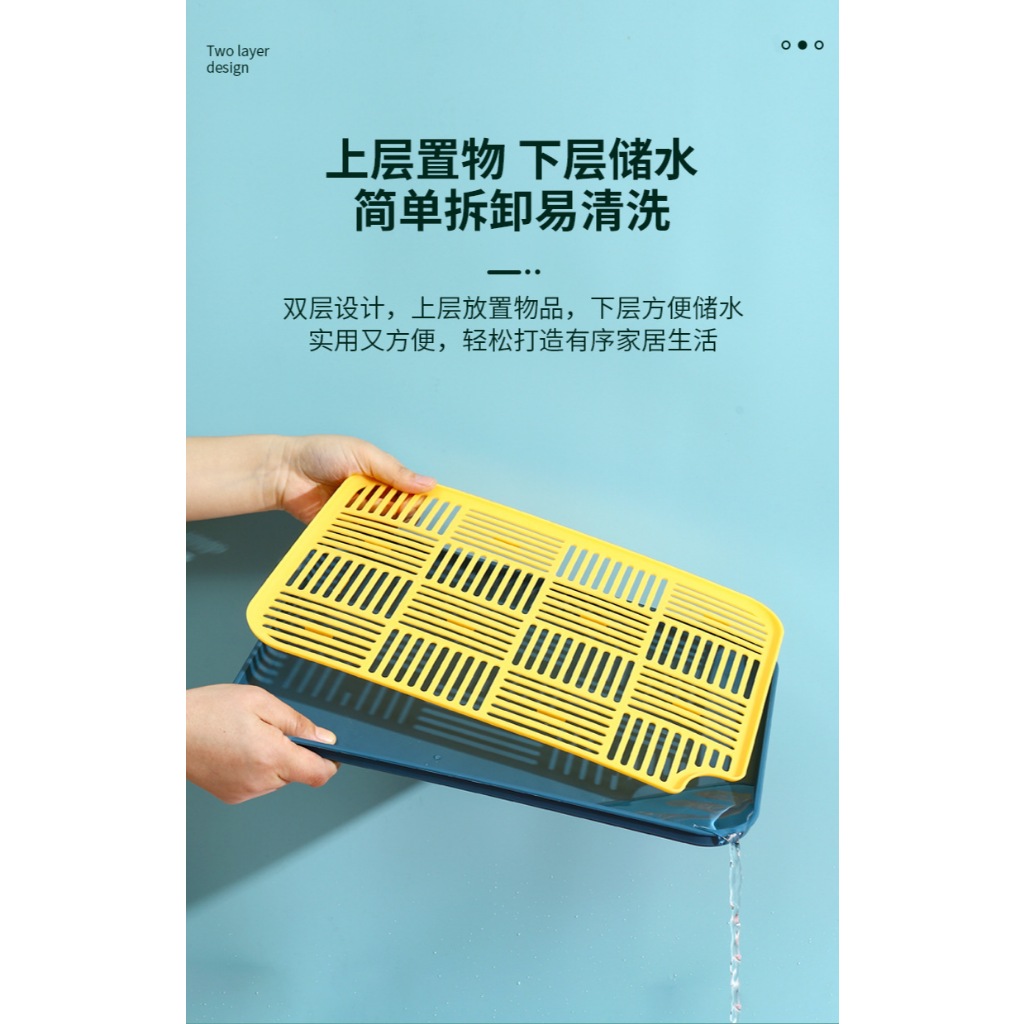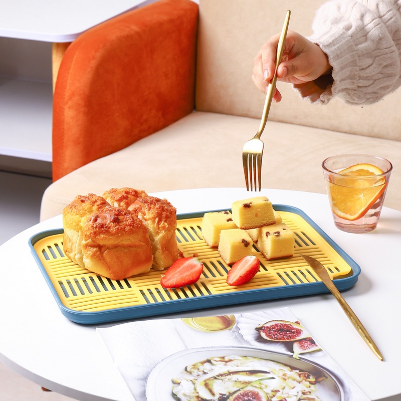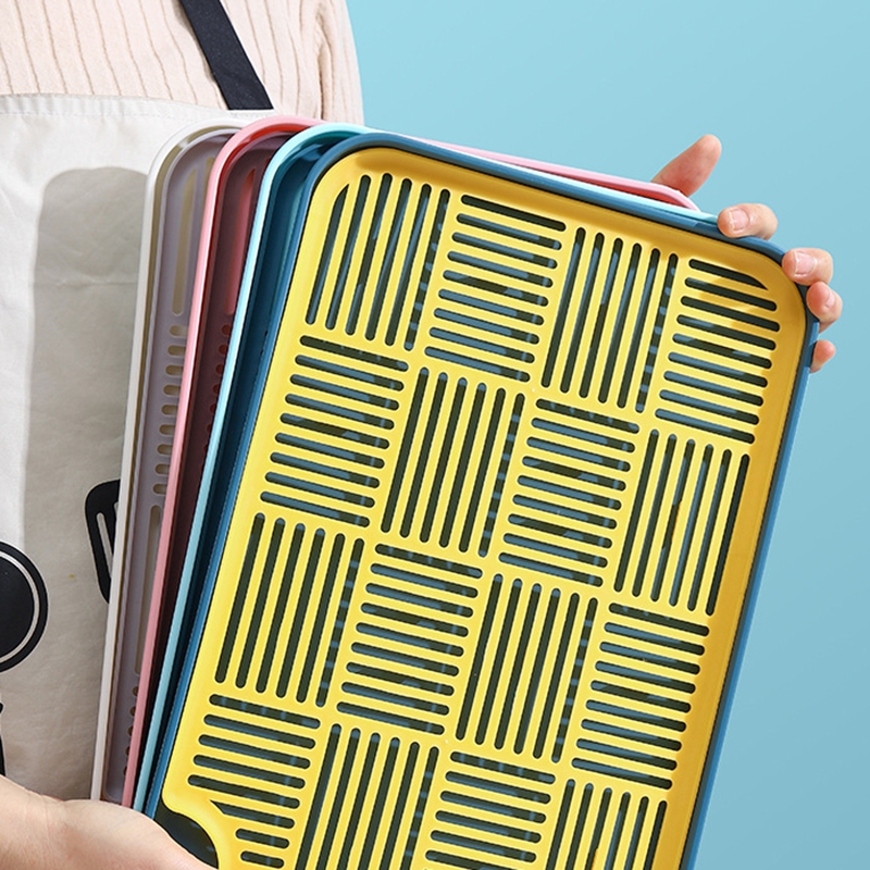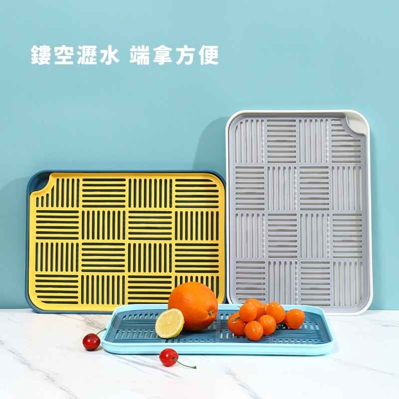 瀝水托盤 托盤 水果盤 廚房托盤 家用水果托盤 多功能瀝水盤 塑膠長方形置物盤_DA158瀝水托盤_灰白(34*24)|瀝水托盤_深淺藍(34*24)|瀝水托盤_藍黃(34*24)|瀝水托盤_粉紫(34*24)PlatesFS生活品專賣