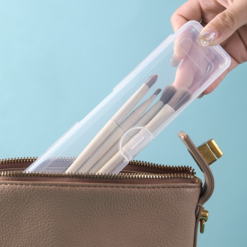 刷具收納盒 透明收納盒 收納盒 刷具盒 化妝刷收納盒 鉛筆收納盒 防塵收納盒 餐具收納盒 牙刷收納盒_B376可掛式_透明刷盒Desk OrganizersFS生活品專賣