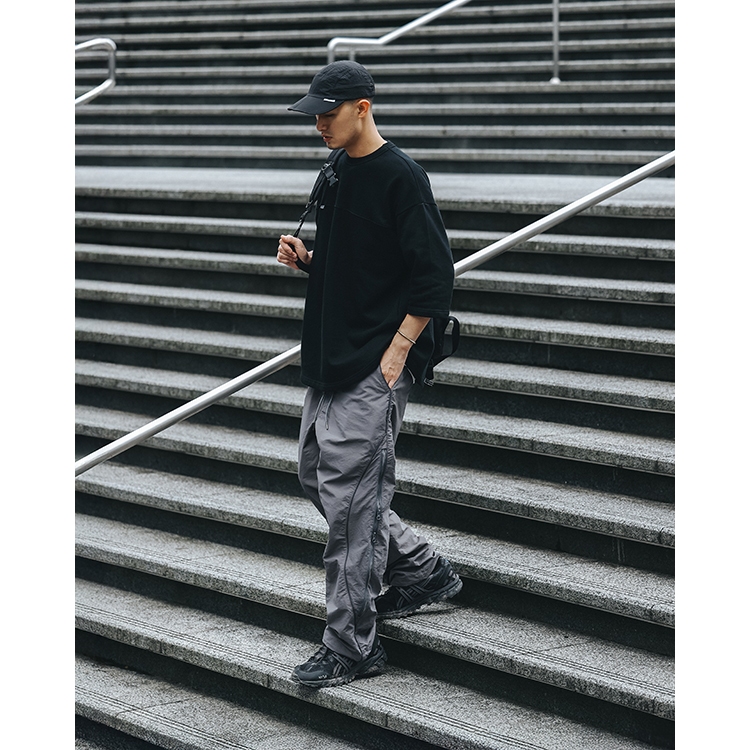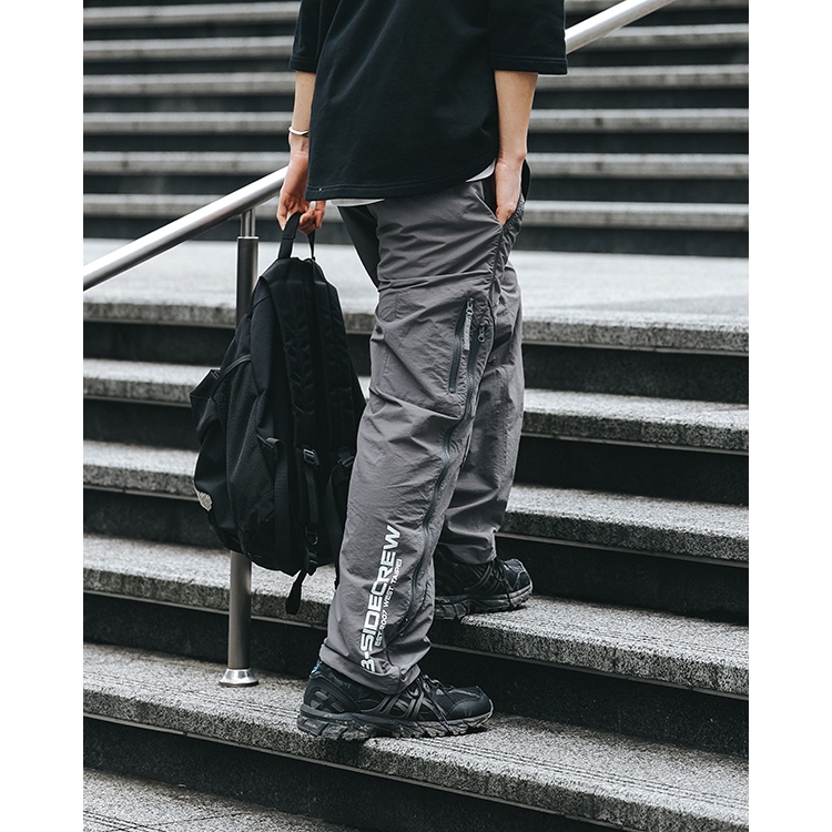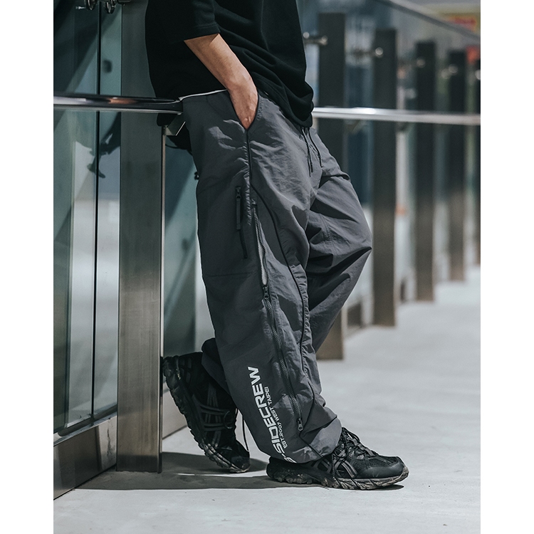[B-SIDE]DOUBLE ZIPPER TRACK PANTS弧形出芽透氣運動長褲 灰色M|L|XLPantsB-SIDE OFFICIAL ONLINE STORE