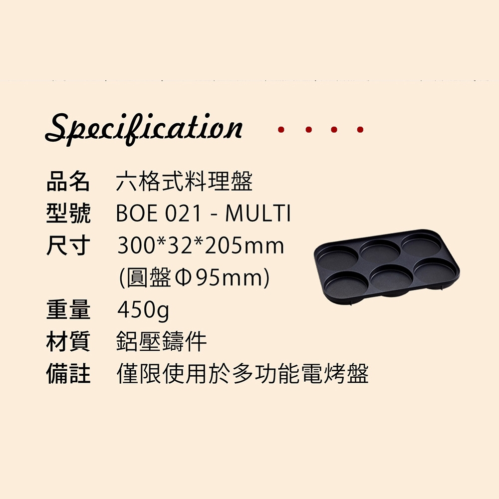 【日本BRUNO】六格式料理盤 BOE021|經典款電烤盤專用|創意料理|家用配件